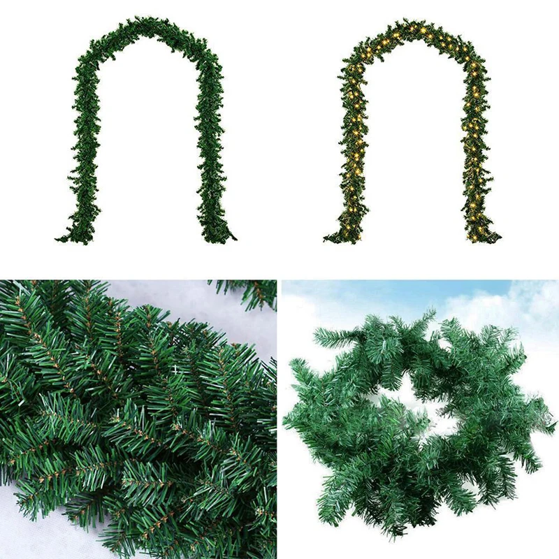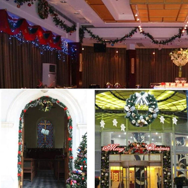 2,7 м ПВХ рождественские украшения, Рождественская елка, гирлянда из ротанга, домашняя стена из сосны, Зеленый Искусственный венок, камин 35