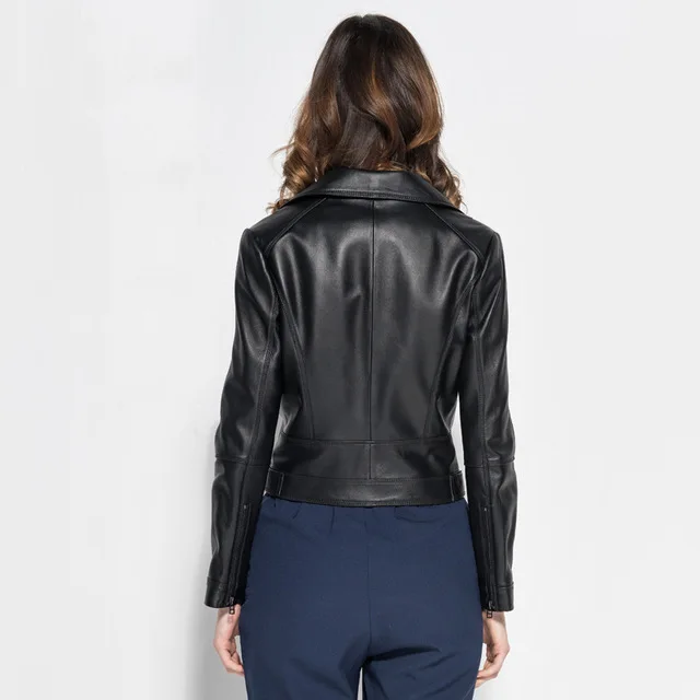 Куртка из 100% натуральной овечьей шкуры, куртка из натуральной кожи, Женская мотоциклетная мягкая модная куртка, тонкая, плюс размер, Осень-зима