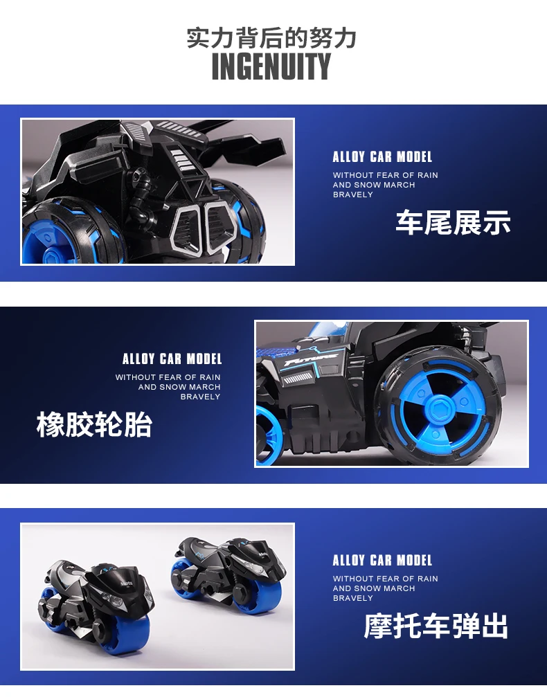 Разнообразие игр:3 в 1 Многофункциональный транспортных средств, из одного отводной автомобиль и два мини мотоциклы, что может быть из транспортного средства. С светодиодный свет и звуковые эффекты, а так же повысить удовольствие.