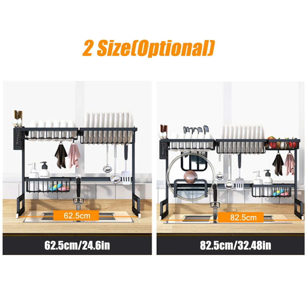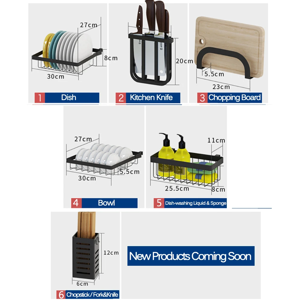 Большая емкость: с двумя полками 30 × 27 см для посуды, чаши и больше посуды; одна полка 20 × 27 см для фруктов и овощей; одна полка 25,5 × 11 см для мытья посуды и губки; один держатель 20 × 20 см для кухонного ножа; 1 палочка для еды/вилка и Держатель ножей; и 1 держатель разделочной доски. Все это зависит от вас!