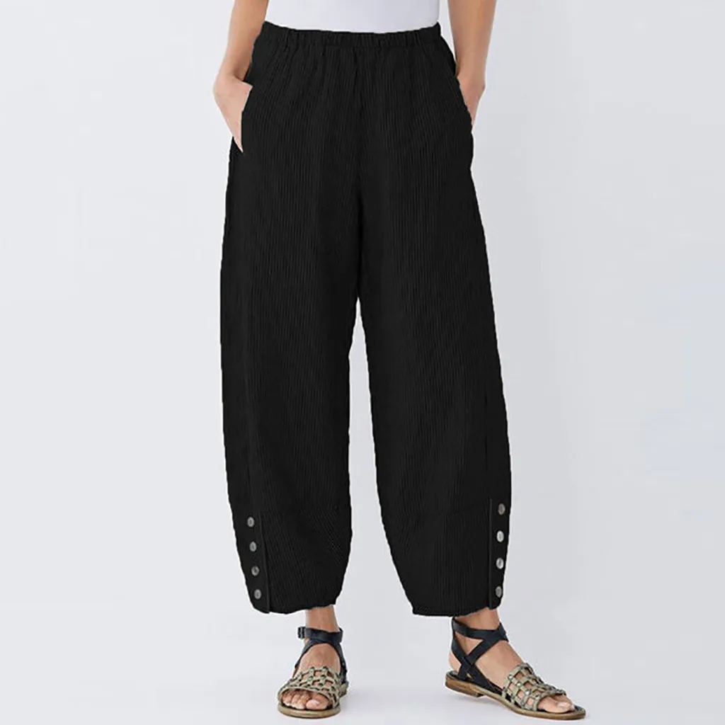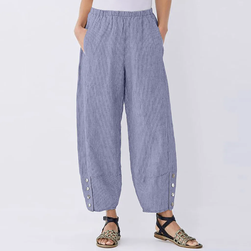 Женские сексуальные полосатые длинные брюки с высокой талией из хлопка и льна, повседневные пляжные брюки