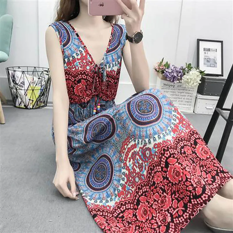 Повод: Повседневное Материал: хлопок Длина одежды: до щиколотки Тип рисунка: печать Стиль: бохо Тип воротника: с круглым вырезом Вес: 0,23 кг Количество: 1 шт. Dre30 стилей, каждый стиль имеет индивидуальность