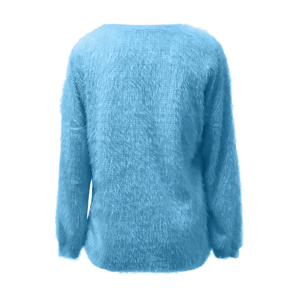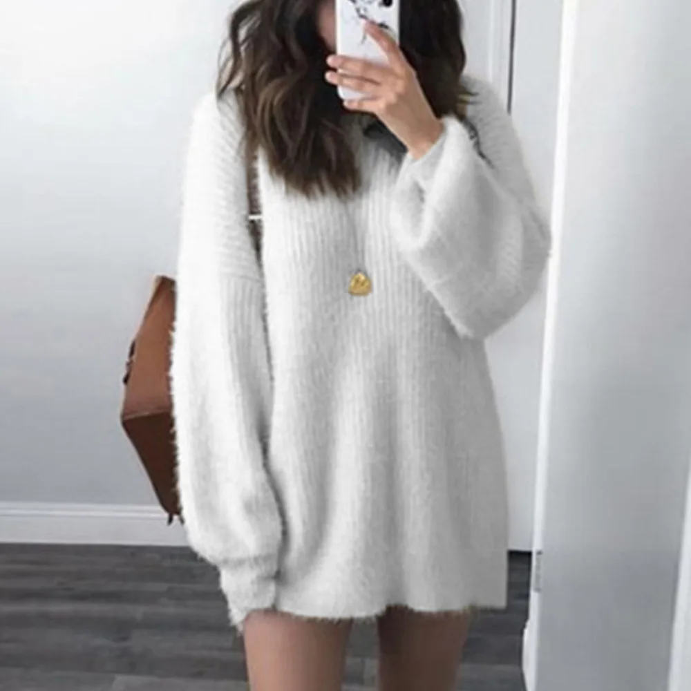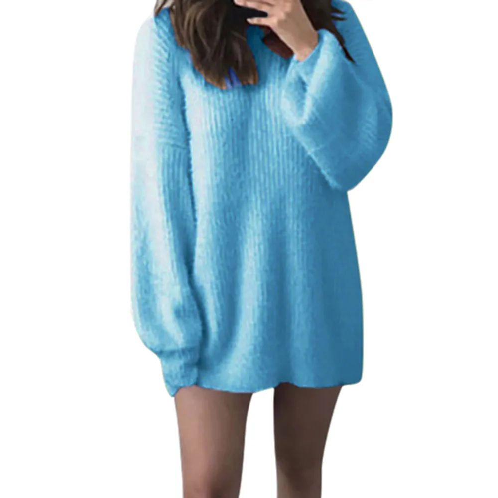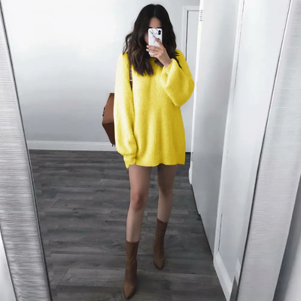 Модная женская однотонная Свободная трикотажная теплая длинная Втулка с круглым вырезом