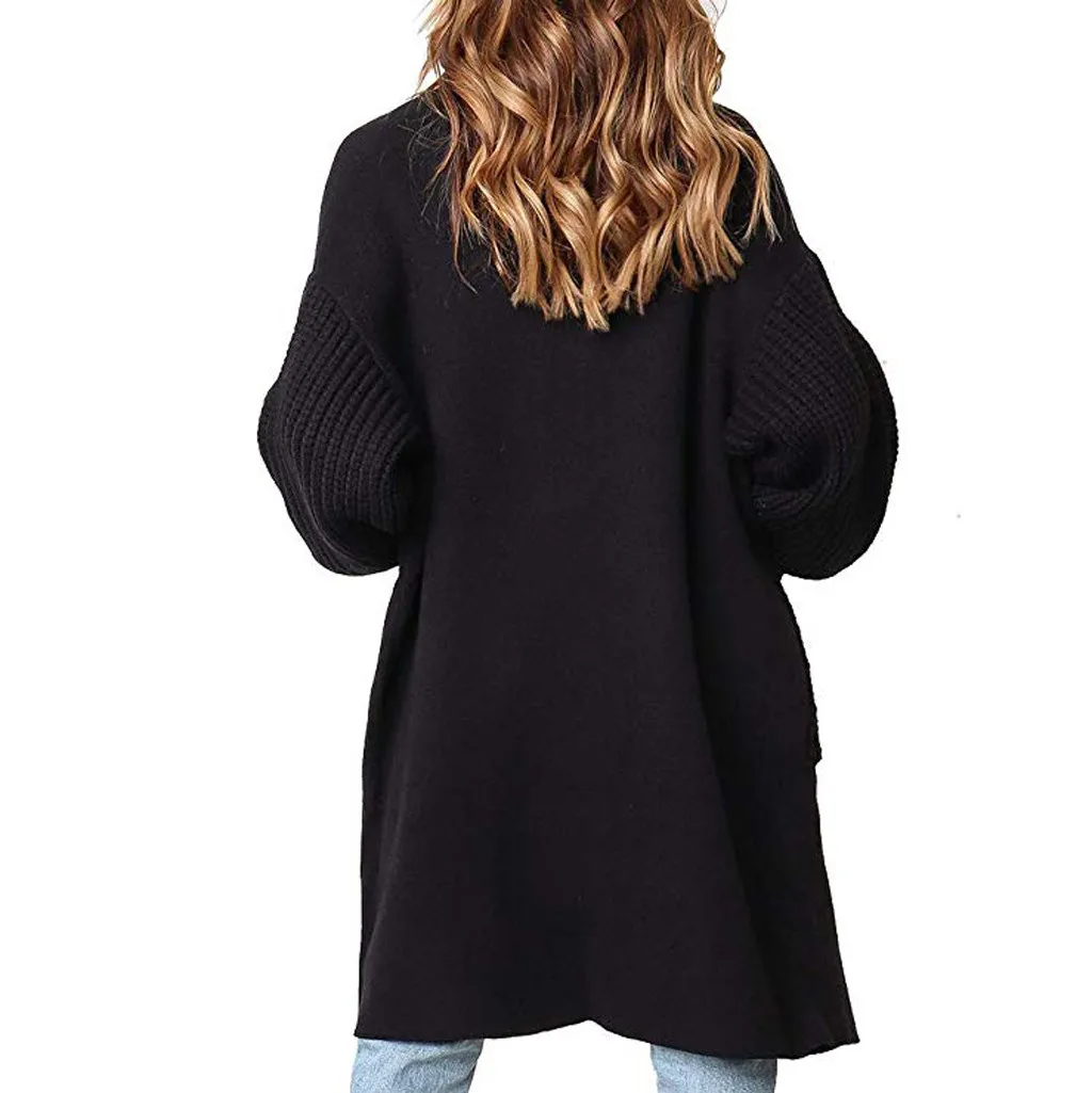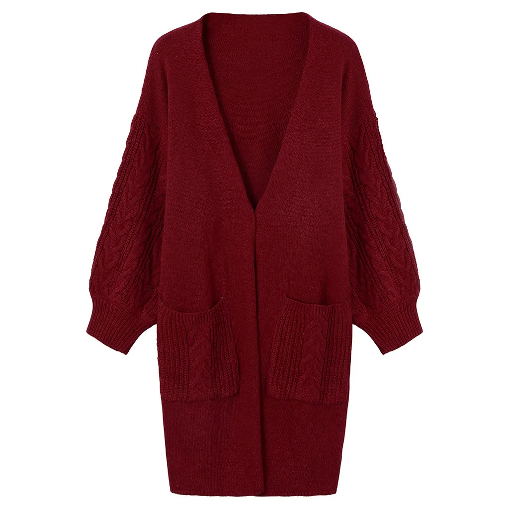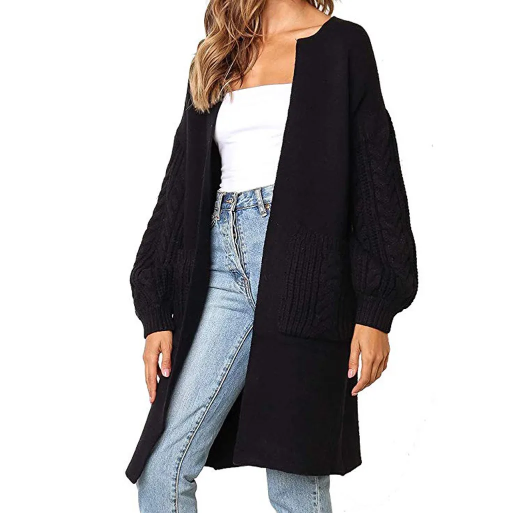 Fashion Women Solid Knitted Long Sleeve Pullover Pockets Cardigans Sweater Top