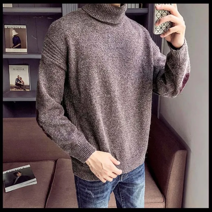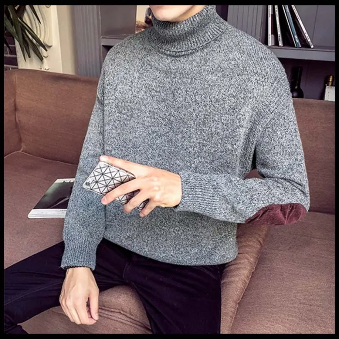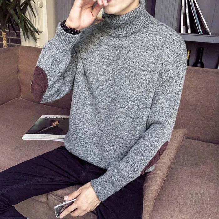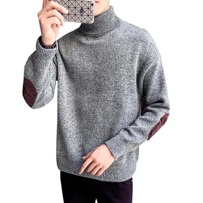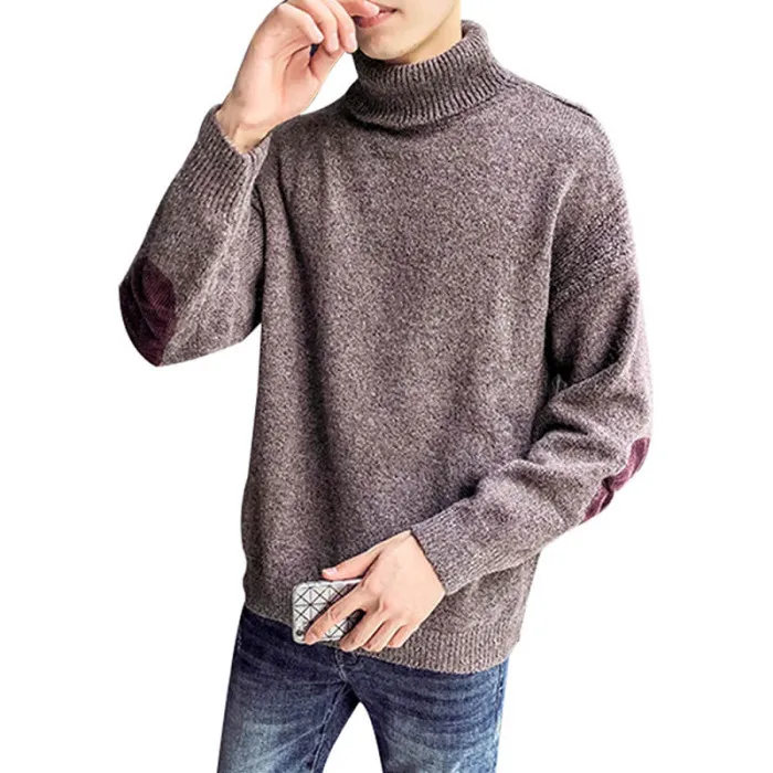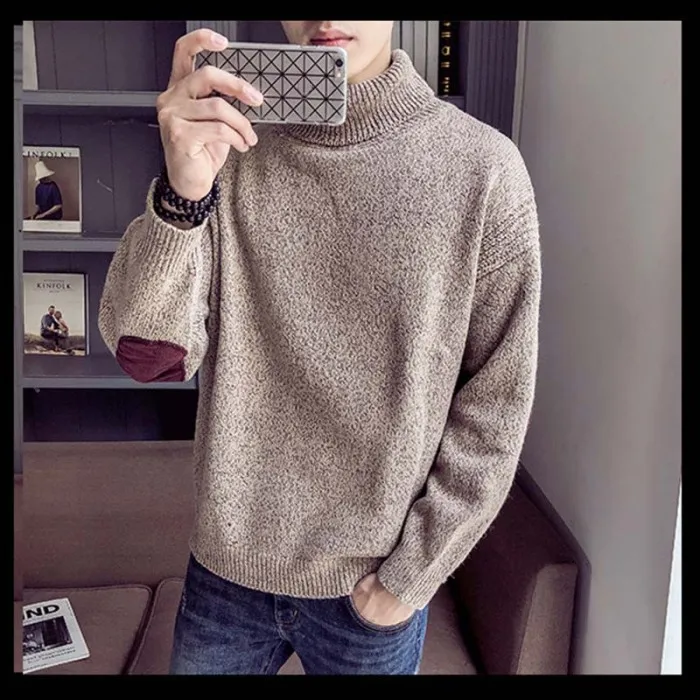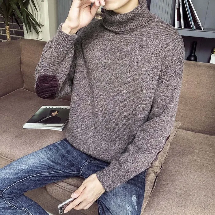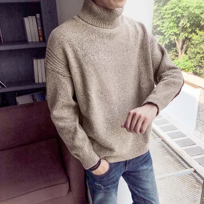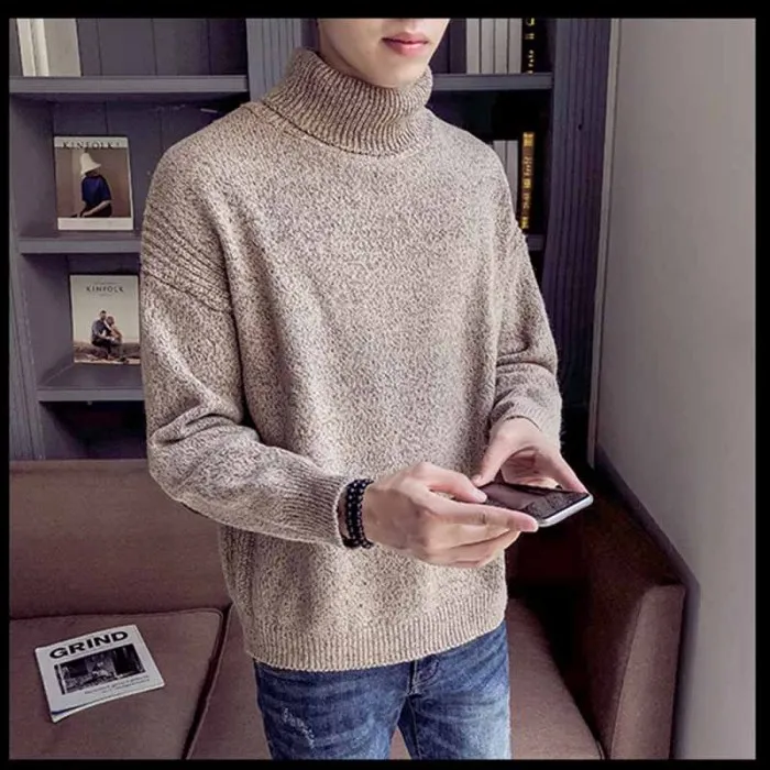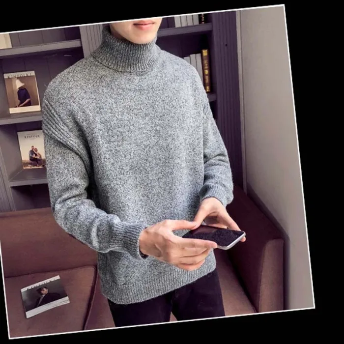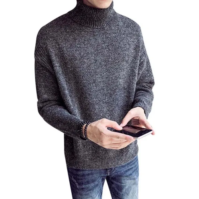 Мужской осенне-зимний свитер с высоким воротником, однотонный пуловер, вязаный свитер JS26