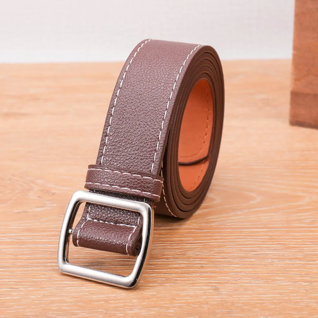 Модный женский новый мужской кожаный ремень с пряжкой однотонное с поясом