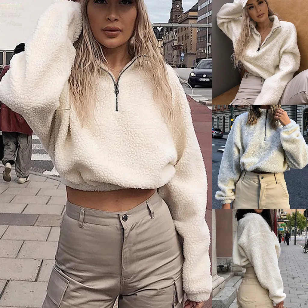 Женская модная однотонная толстовка на молнии с воротником-стойкой и длинными рукавами