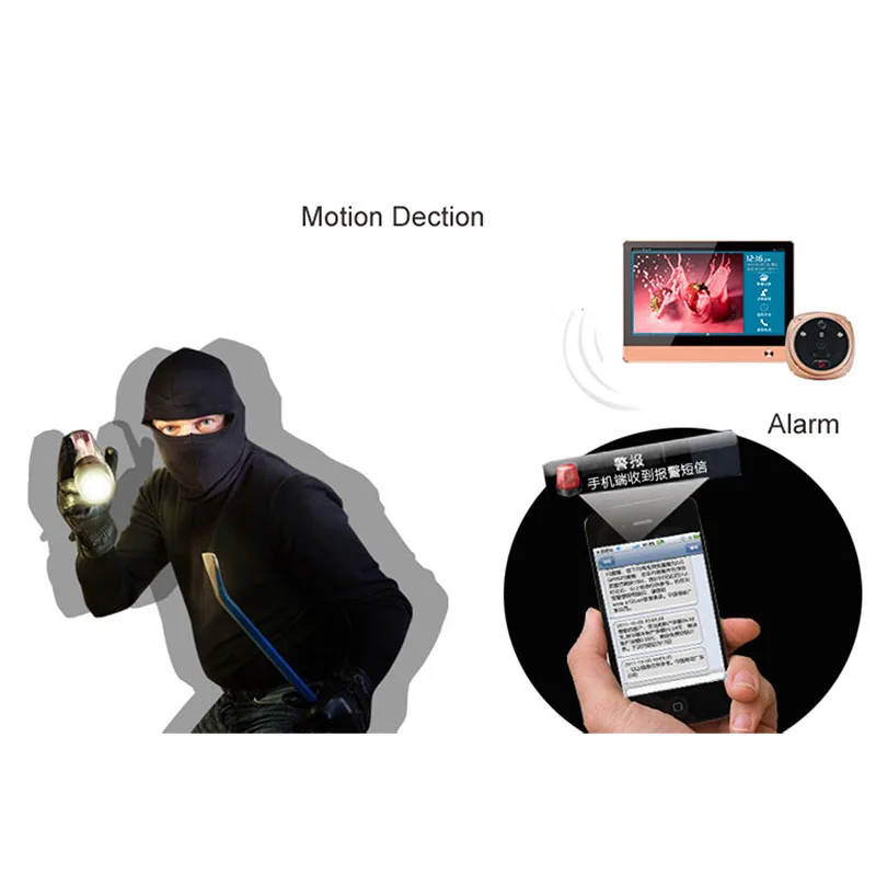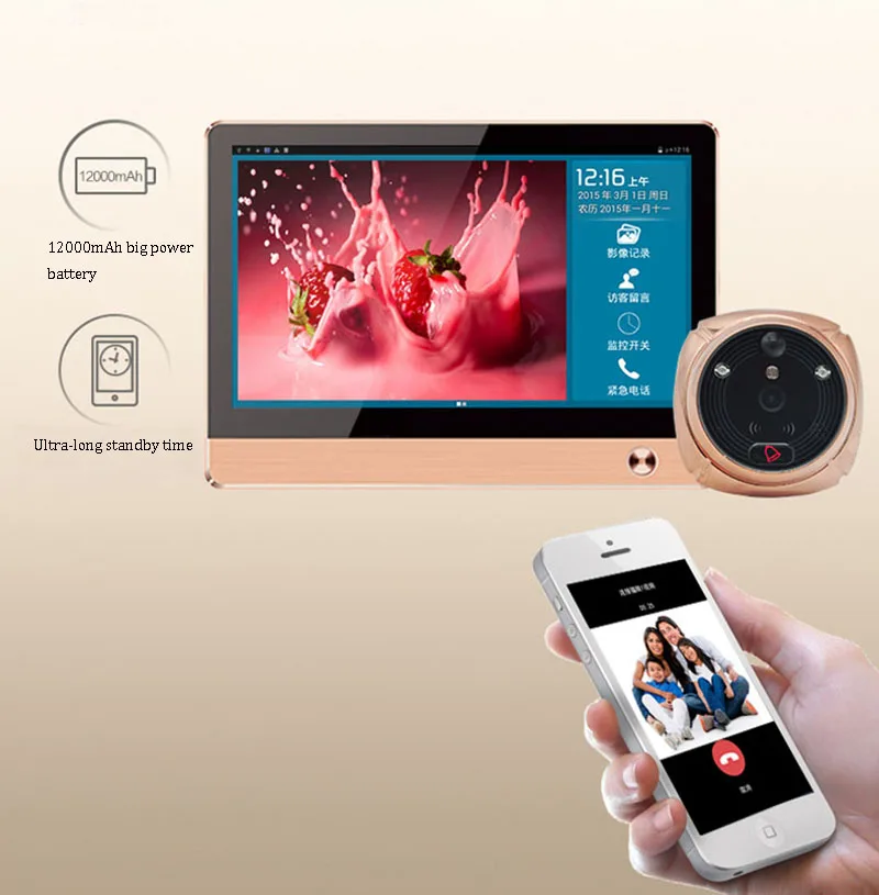 1 емкостный экран 1024x600 HD 2 сверхдлительное время работы в режиме ожидания 3 Wi-Fi видео чат и уведомления приложений через приложение Android/iOS на смартфоне и планшете 4 датчик движения: автоматический захват изображения, когда посетитель остается впереди двери в течение определенного периода 5 видео сообщения: посетитель может оставить видео-сообщение для проведения