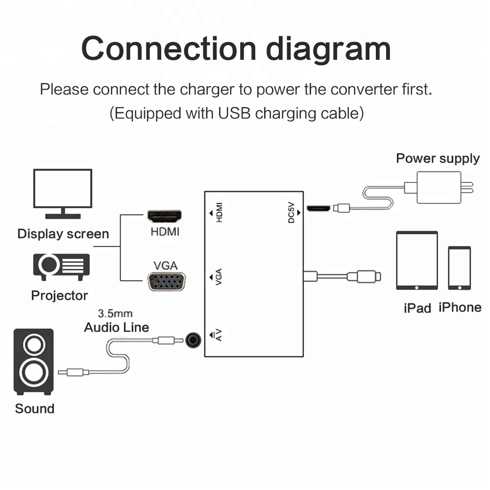 Для lightning-hdmi цифровой av-тв адаптер кабель для ipad конвертер vga для iphone X iphone 8 ipad серии Горячая продажа конвертер