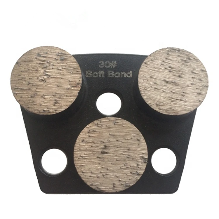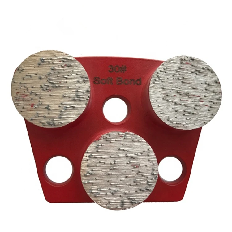 Трапециевидная алмазная шлифовальная обувь для бетона и терраццо Металлические Бриллианты имеют высокую прочность, отличную износостойкость и низкий коэффициент трения. Металл Бонд бриллианты высокая эффективность шлифования и низкая сила шлифования генерирует меньше тепла в процессе шлифования. Применение: подходит для общего (бетона, камня) шлифования, в то время как в основном они используются для краски, клея, эпоксидного удаления и напольного покрытия, высокое качество и высокая эффективность, длительный срок службы. Преимущество: очень эффективно для сложных ситуаций, таких как удаление очень стойкого покрытия. Характеристики: отличная износостойкость, низкая стоимость, лучшее покрытие поверхности и т. Д. Примечание: специальный логотип, размер и формы сегментов, установка доступна по запросу заказчика. Наименование товара: Teapezoid алмазная шлифовальная обувь с тремя круглыми сегментами Номер товара: GT66 Материал: бриллиант + металлический порошок Минимальный объем заказа: 12 шт./компл. Сегмент Размеры: D25mm * H12.5mm * 3T (три круглых сегментов) Подключение: 3 X M6 или M8 или голые отверстия. Машина: быстрая Концевая шлифовальная машина Зернистость сегментов: 16 #, 24 #, 36 #, 46 #, 50 #, 80 #, 100 #, 120 #, 180 #, 200 #, 270 # и т. Д. Твердость зернистости: очень мягкая связь, мягкая связь, средняя связь, жесткая связь, очень жесткая связь, экстремальная жесткая связь. Качество: международный стандарт качества Применение: бетон и Терраццо пол
