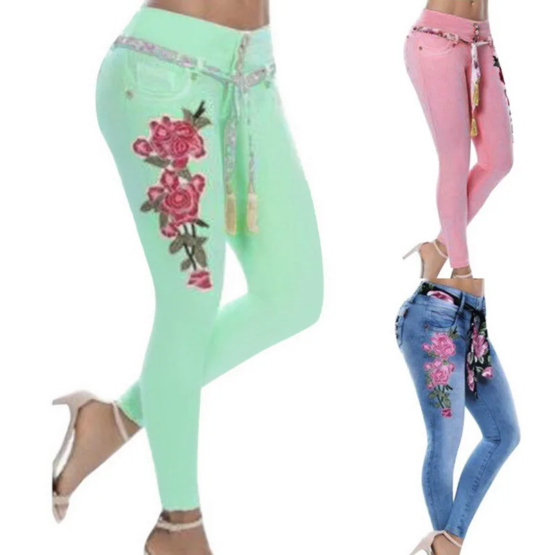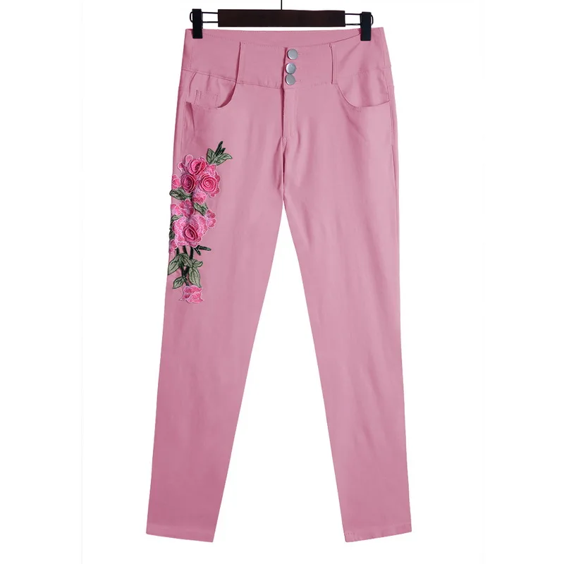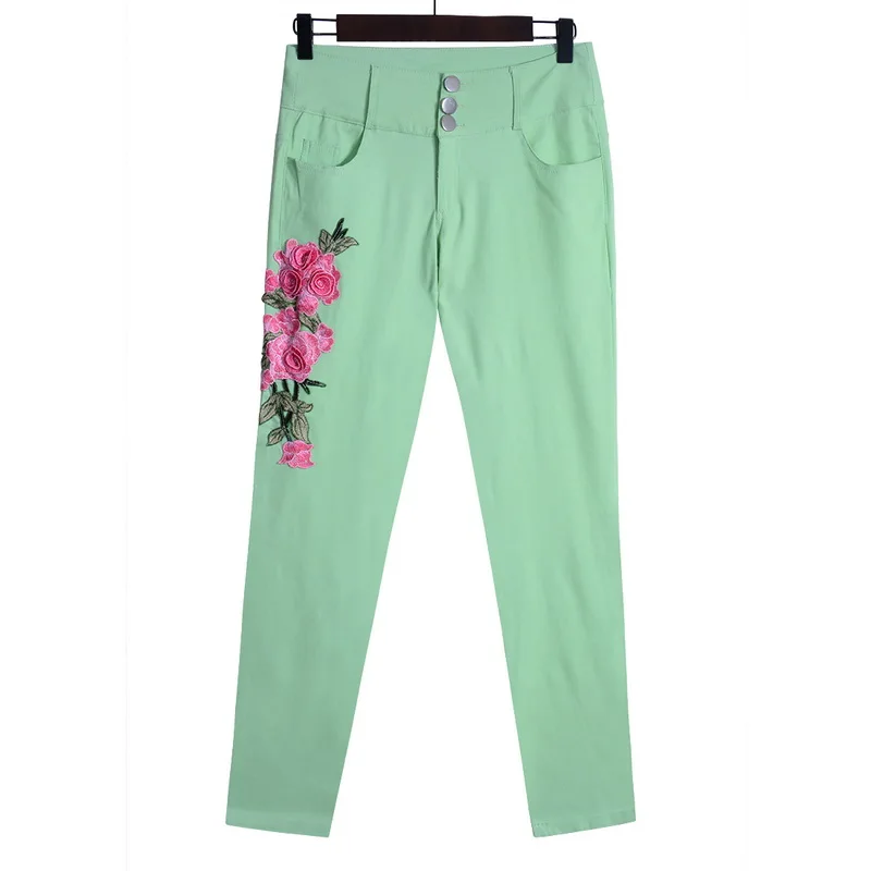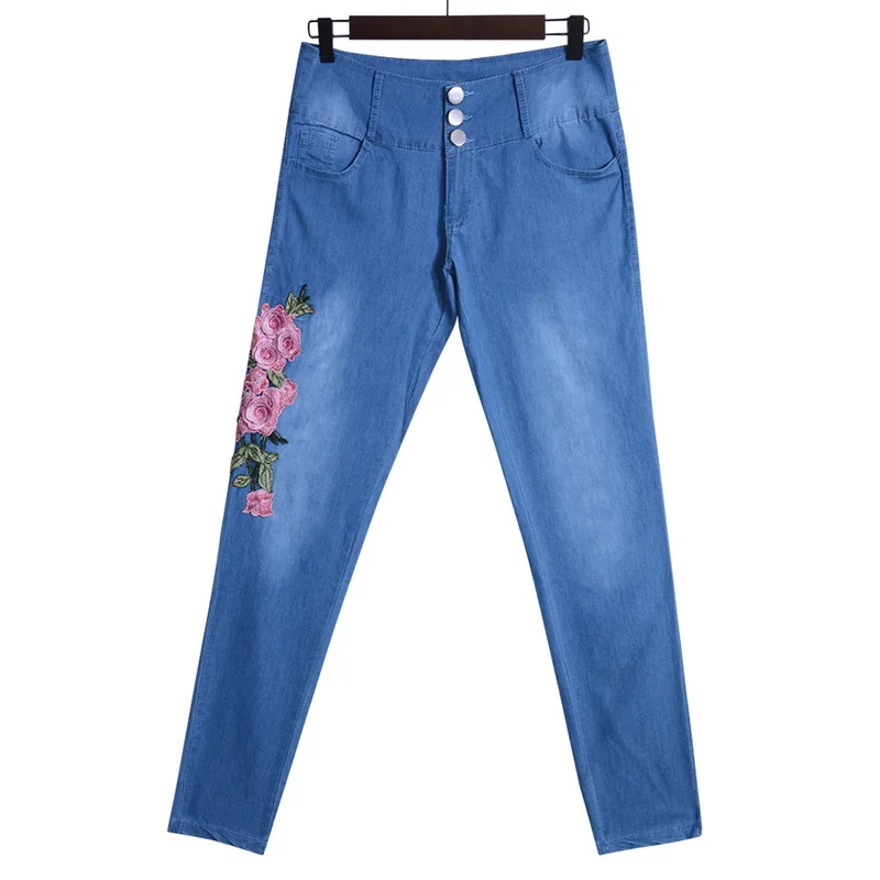 Вышитые розы, обтягивающие, джинсы, большие размеры