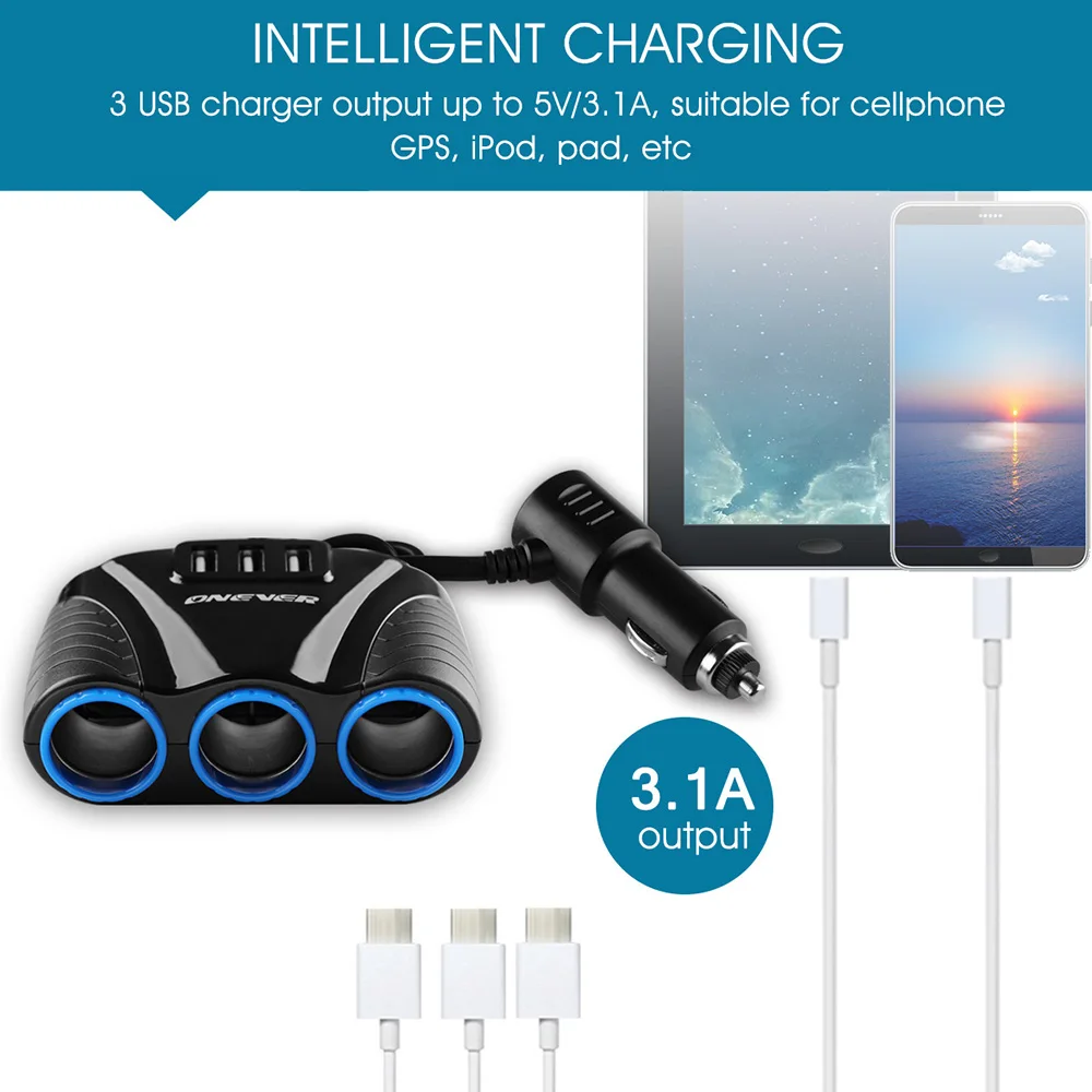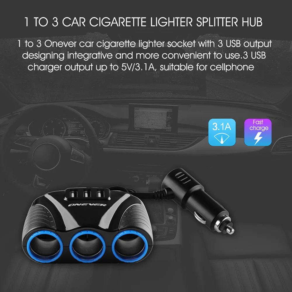 От 1 до 3 автомобильных прикуривателей с 3 выходами USB, проектируя интегрированную и более удобную в использовании.Параметры: