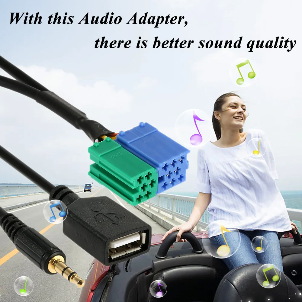 Этот адаптер Aux позволяет насладиться любимыми композициями во время вождения, с 3,5 мм флеш-накопитель USB с гнездовым головы, вы можете подключить его с помощью ваших мобильных телефонов, usb-накопителя, для ноутбука, для iPad... Чтобы получить доступ к большему количеству аудиоисточников и зарядить вашу электронику.