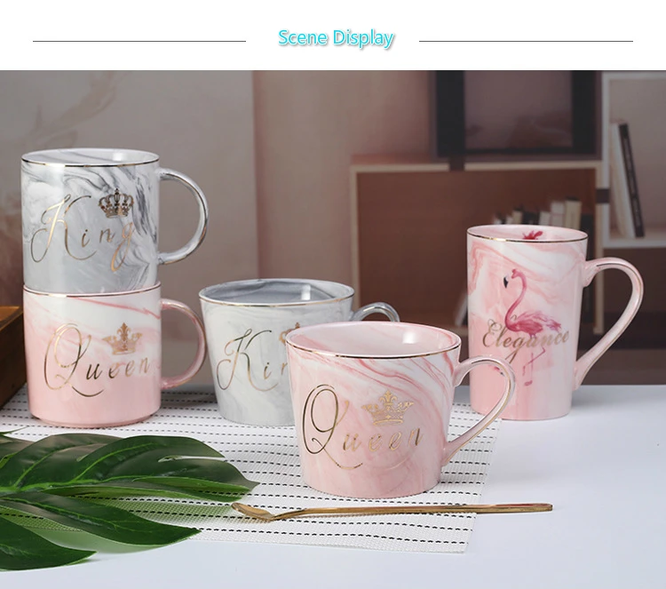 Beautiful Flamingo Crown Marble Ceramic Couples Coffee Milk Mugs Breakfast Afternoon Tea Festival Gifts