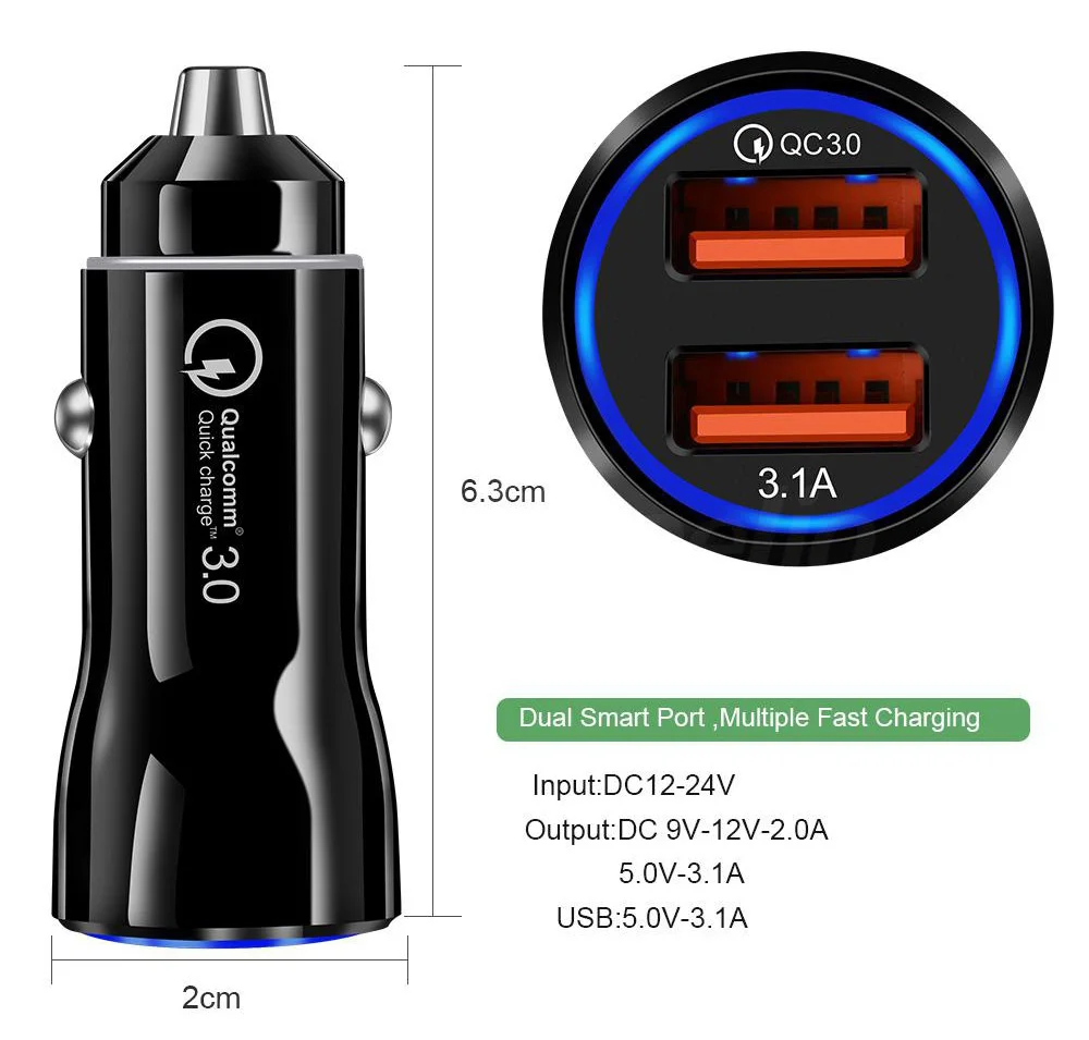 3.1A автомобильное зарядное устройство Quick Charge 3,0 Dual USB быстрая зарядка для iphone Xiaomi Huawei мобильный телефон зарядное устройство автомобильного прикуривателя