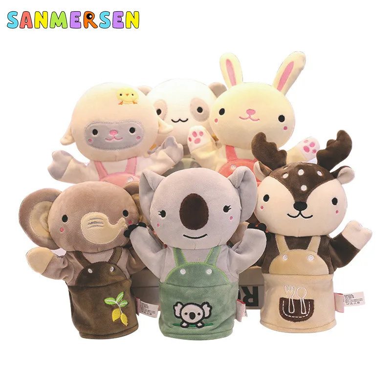 SANMERSEN, Мультяшные милые плюшевые перчатки с изображением животных, ручная история кукол, игрушки, кролик, голова слона, рисунок, яркая детская модель марионетки, подарки для детей