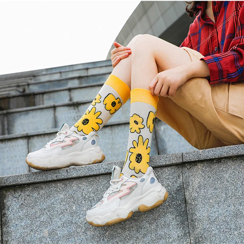 Трендовые спортивные носки с персонажами мультфильмов; Короткие носки с маленькими цветами; Женские носки