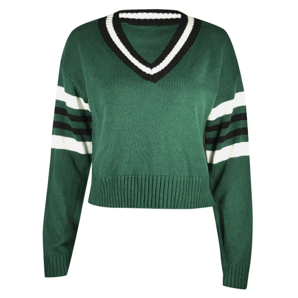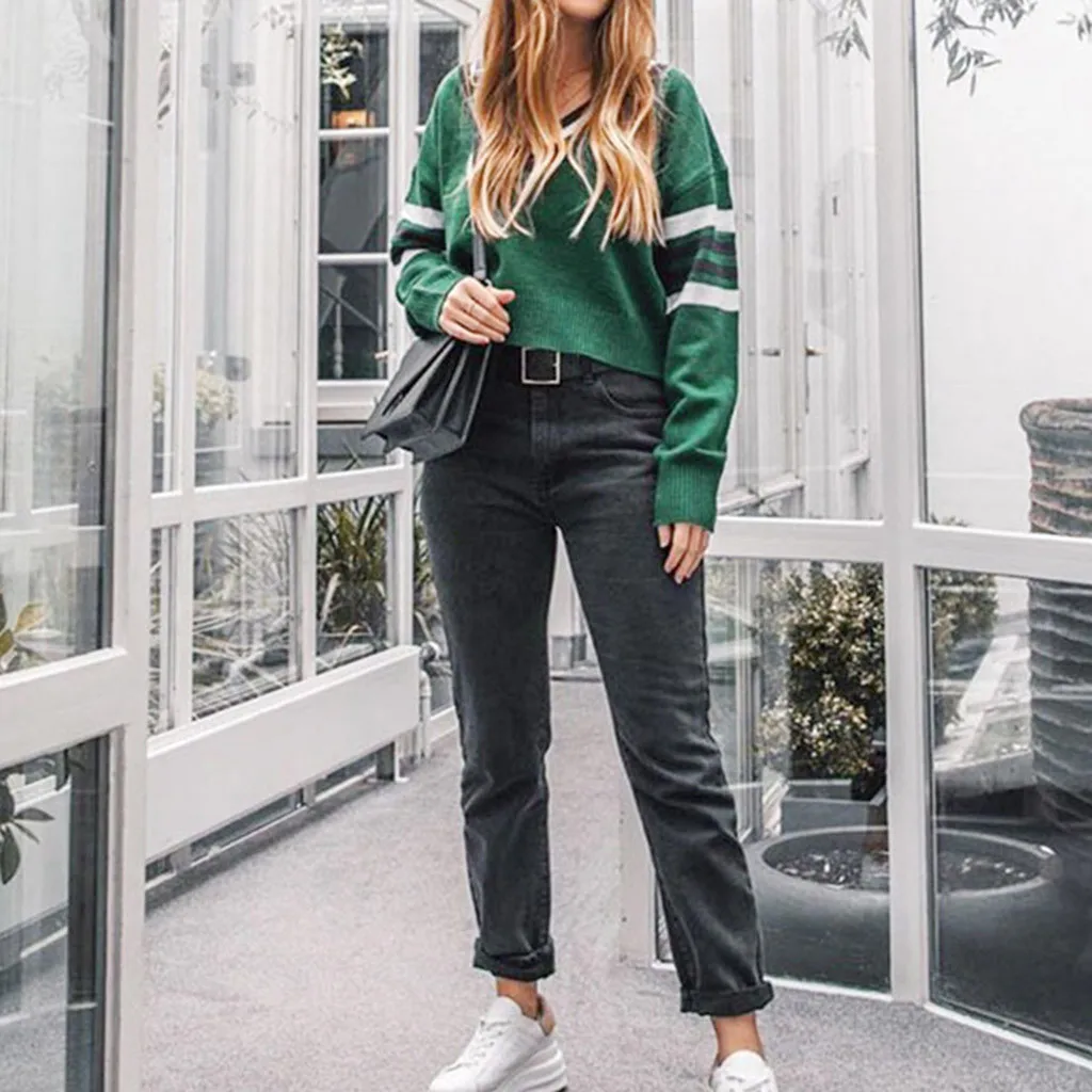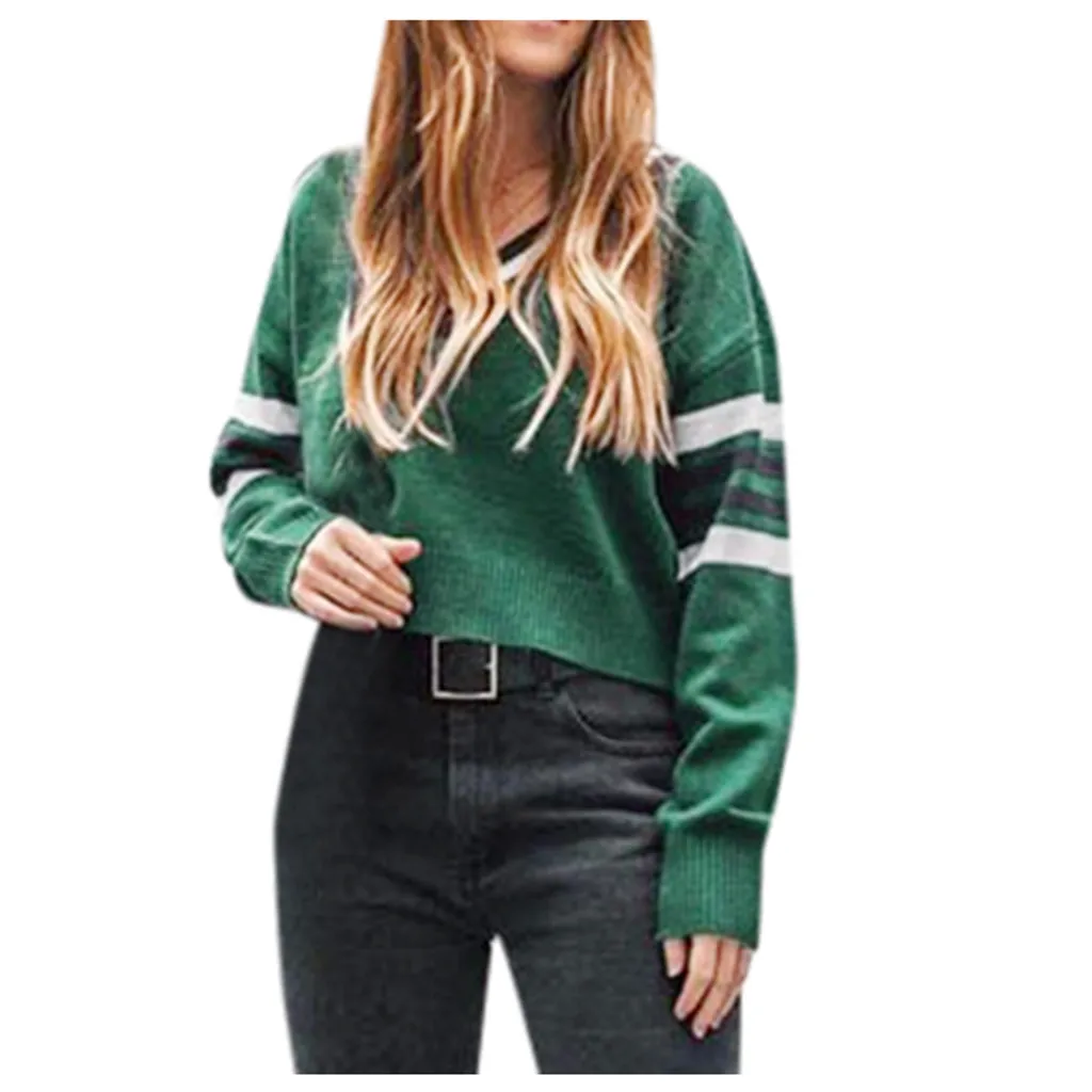 Женский зимний модный свитер с v-образным вырезом, цветной топ с длинными рукавами