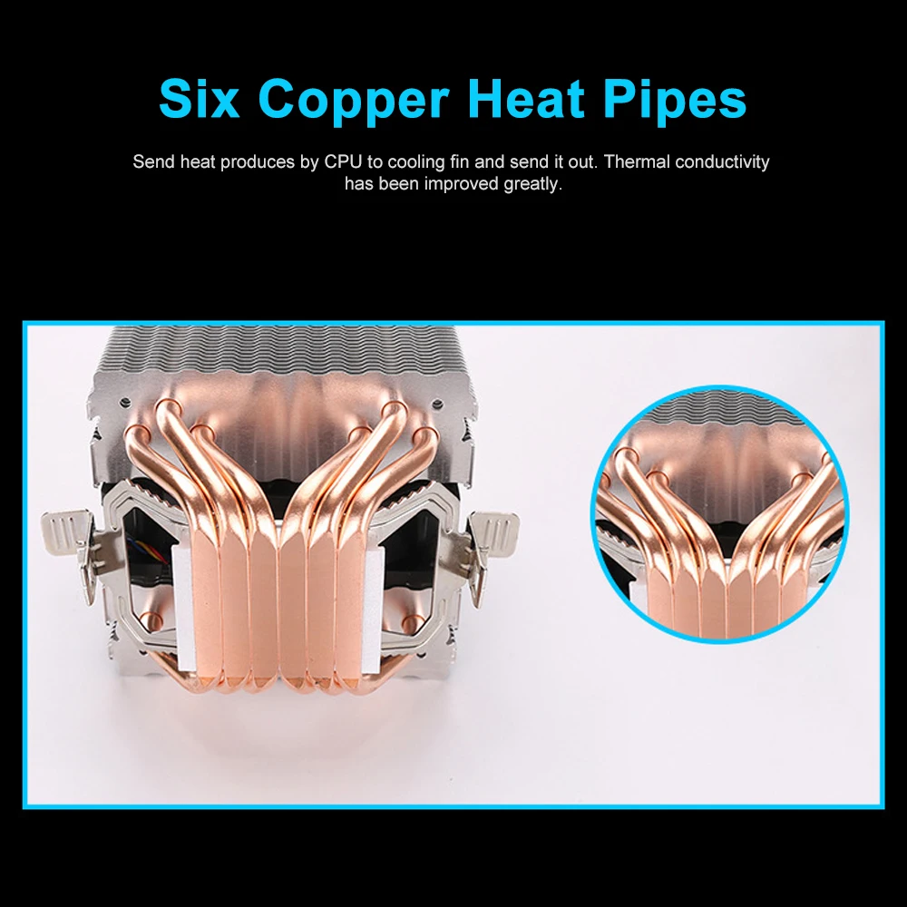 Гидравлический кулер для процессора, вентиляторы с тепловыми трубками, тихий радиатор для Intel Core AMD Sempron Platform с синим светильник