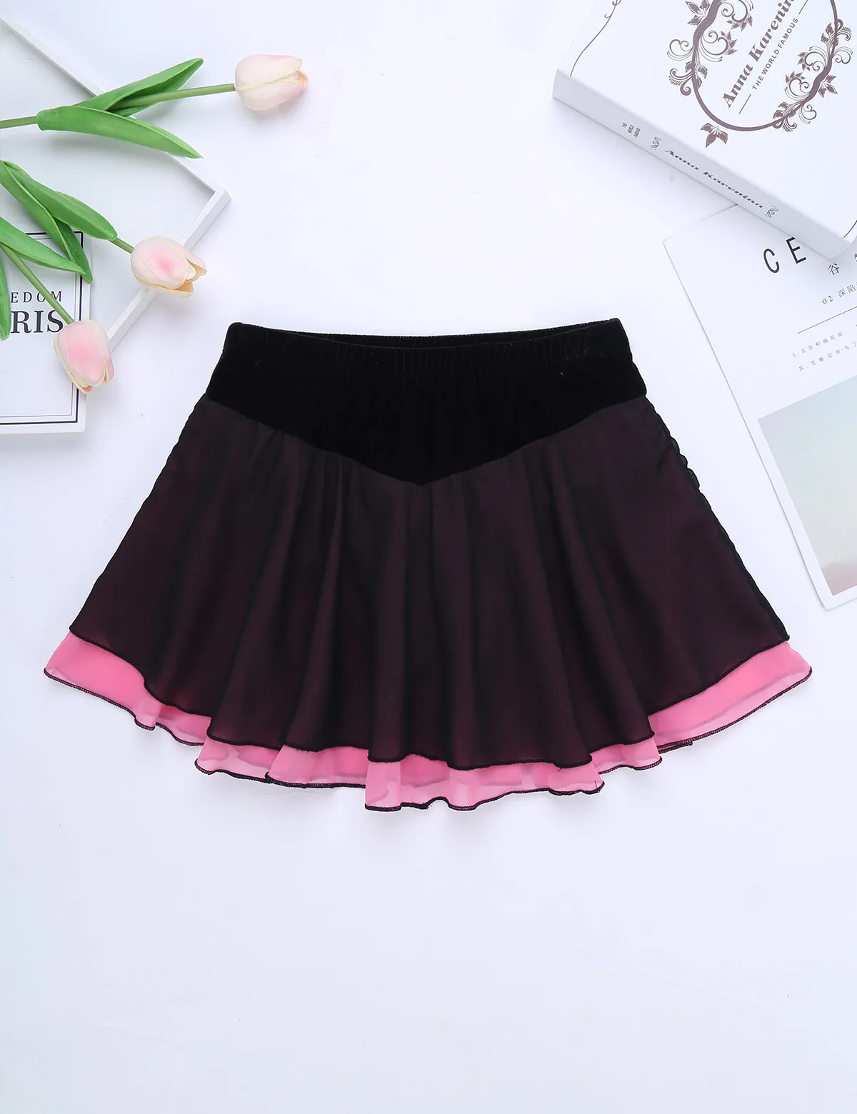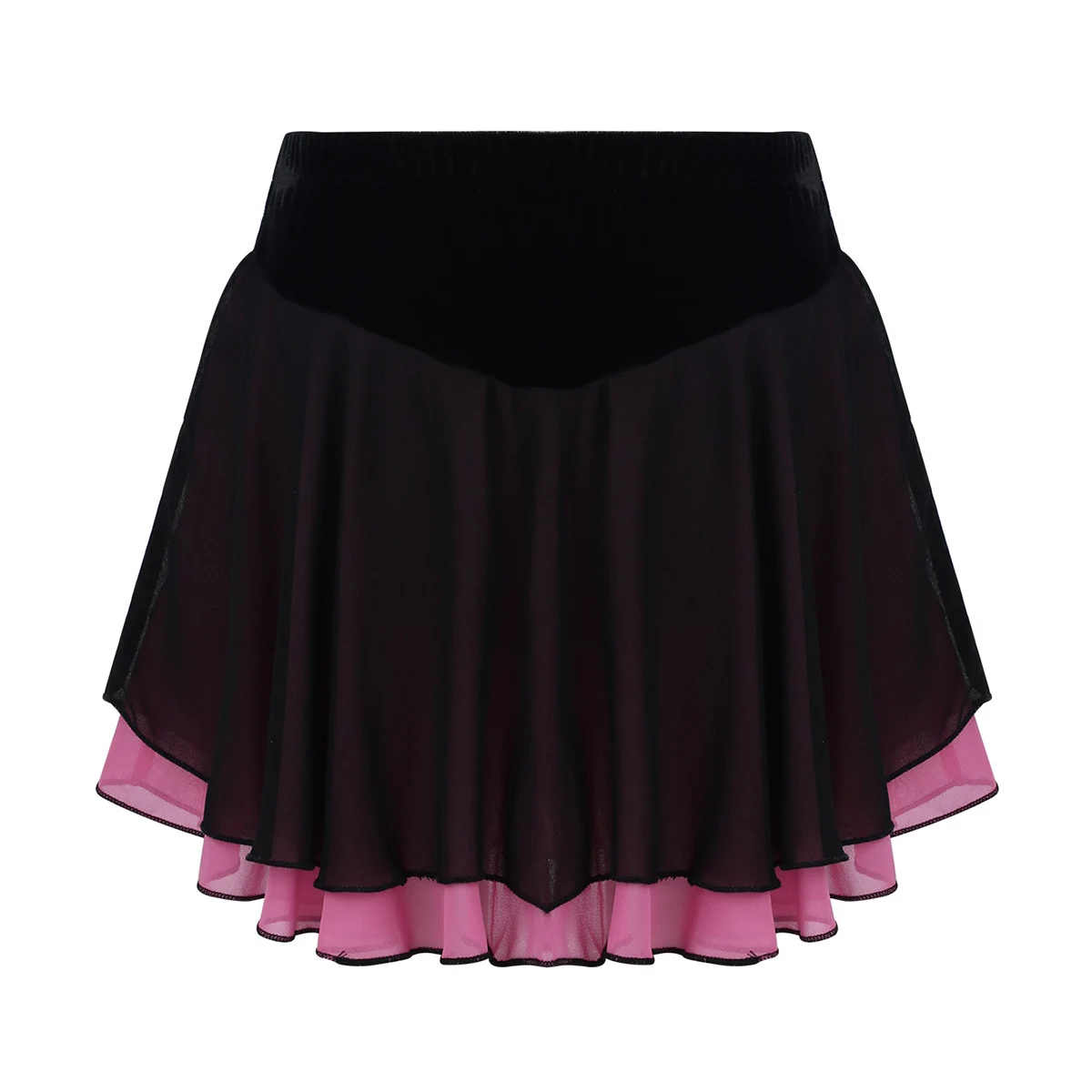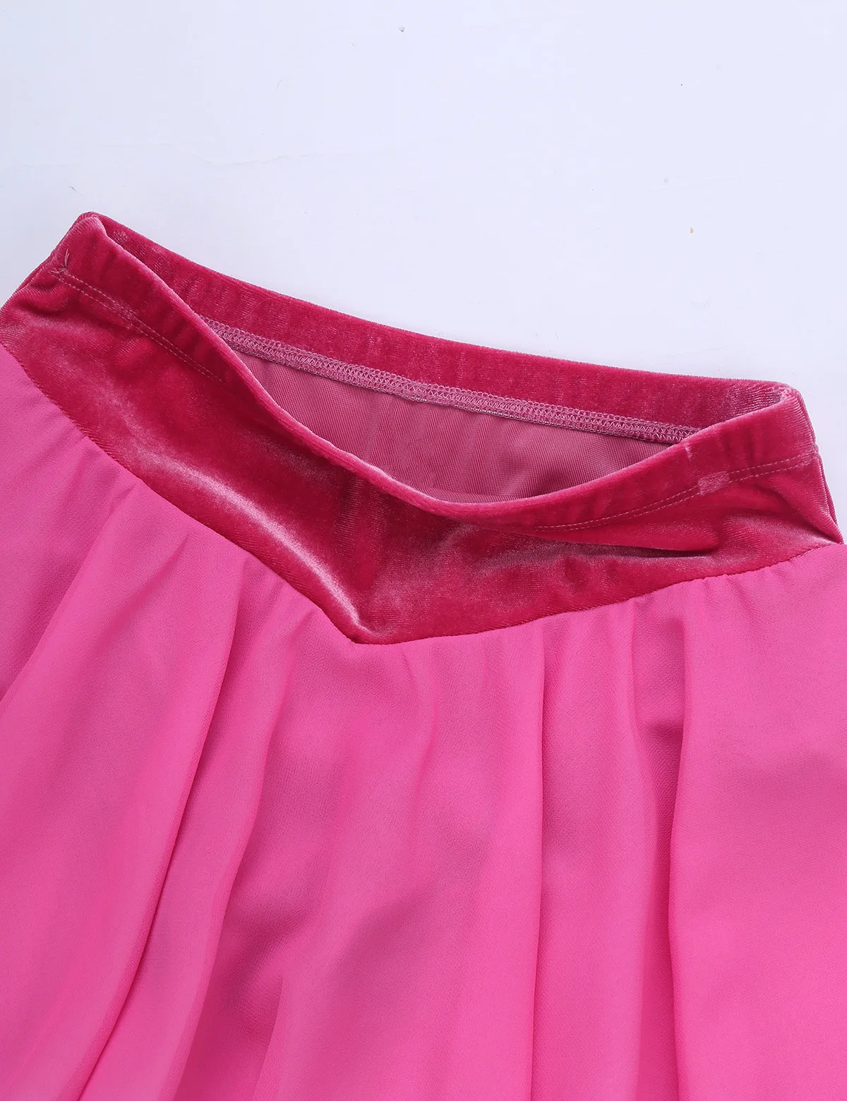 Бархатный эластичный дизайн с высокой талией, двухслойная разноцветная шифоновая юбка. Натягивается На застежку.