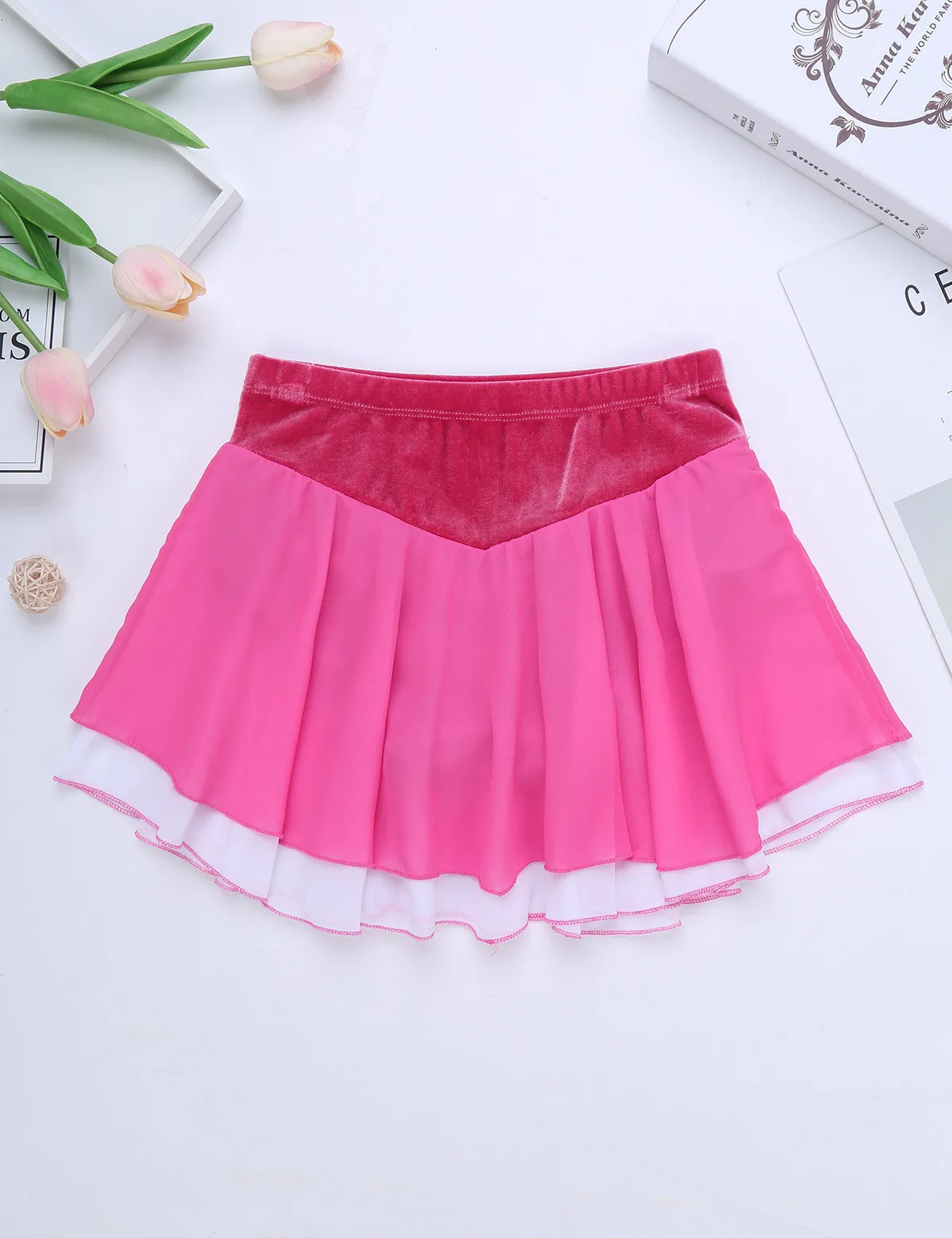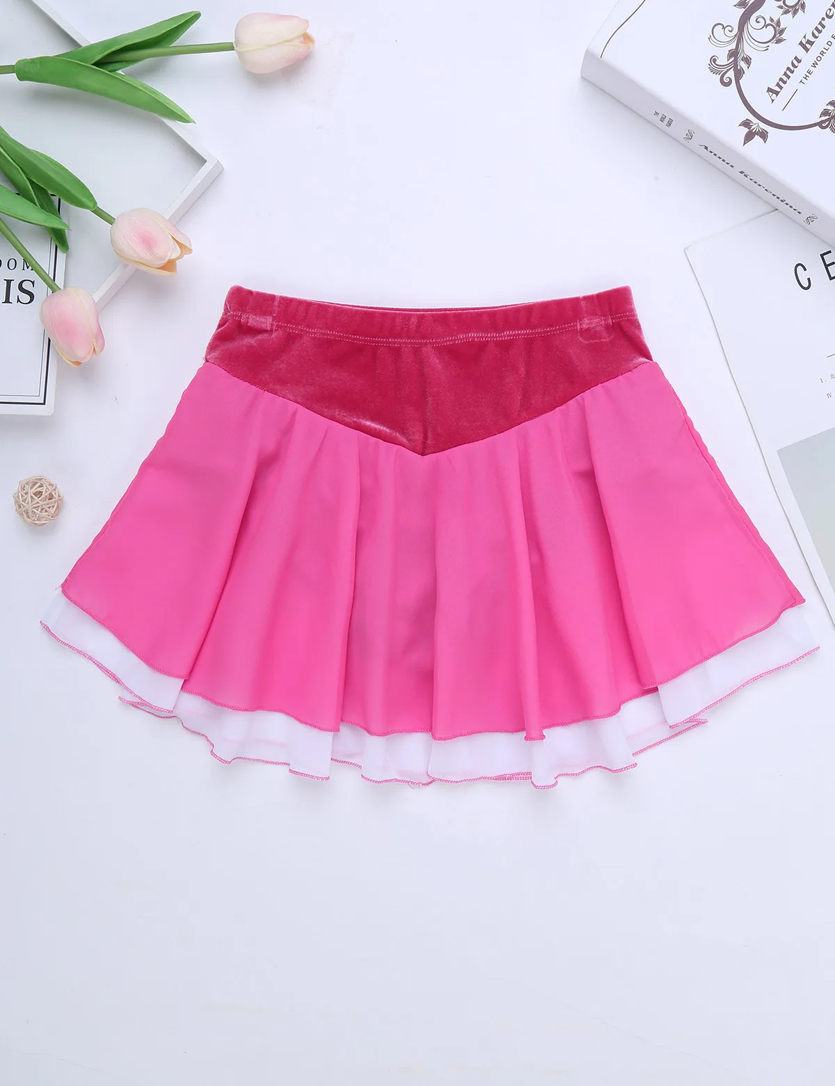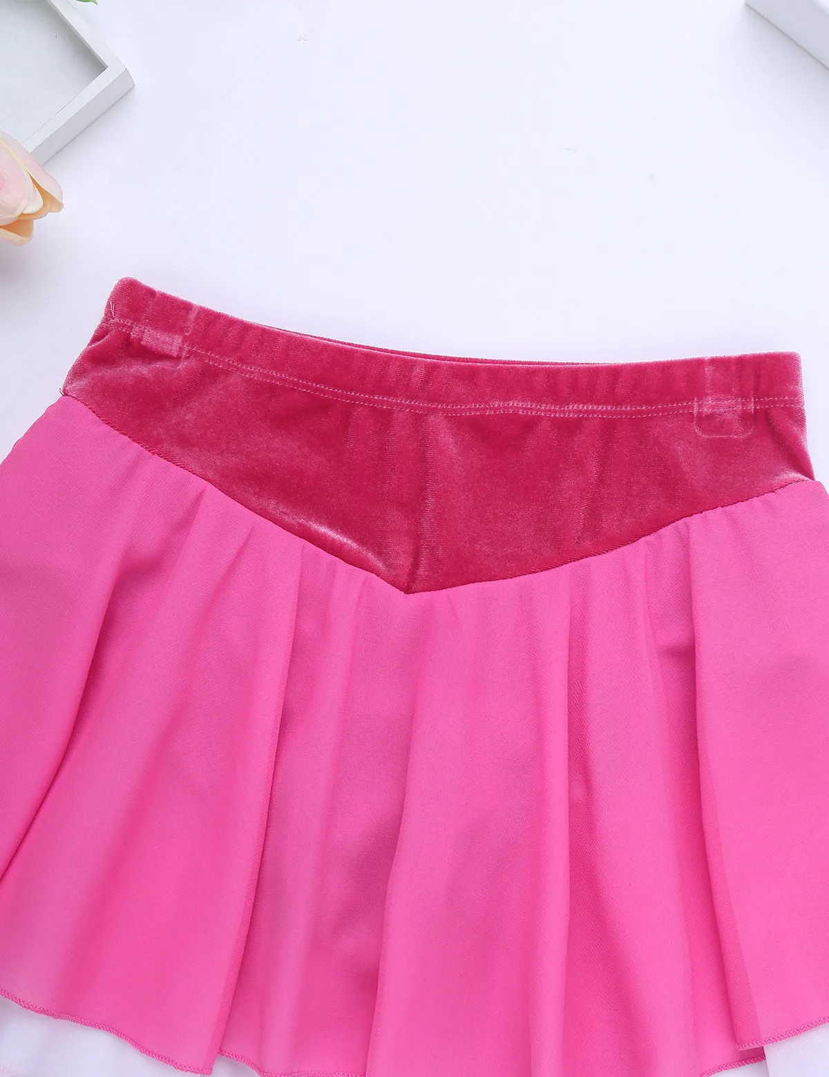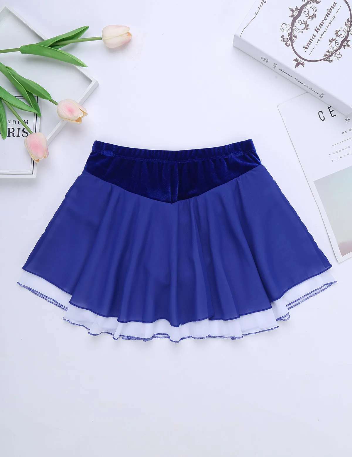 Бархатный эластичный дизайн с высокой талией, двухслойная разноцветная шифоновая юбка. Натягивается На застежку.