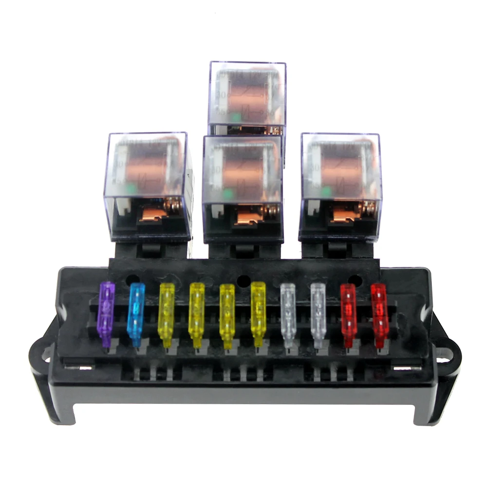10 способ предохранителей с 5-контактный разъем реле и 13 шт. Стандартный лезвие предохранителей.