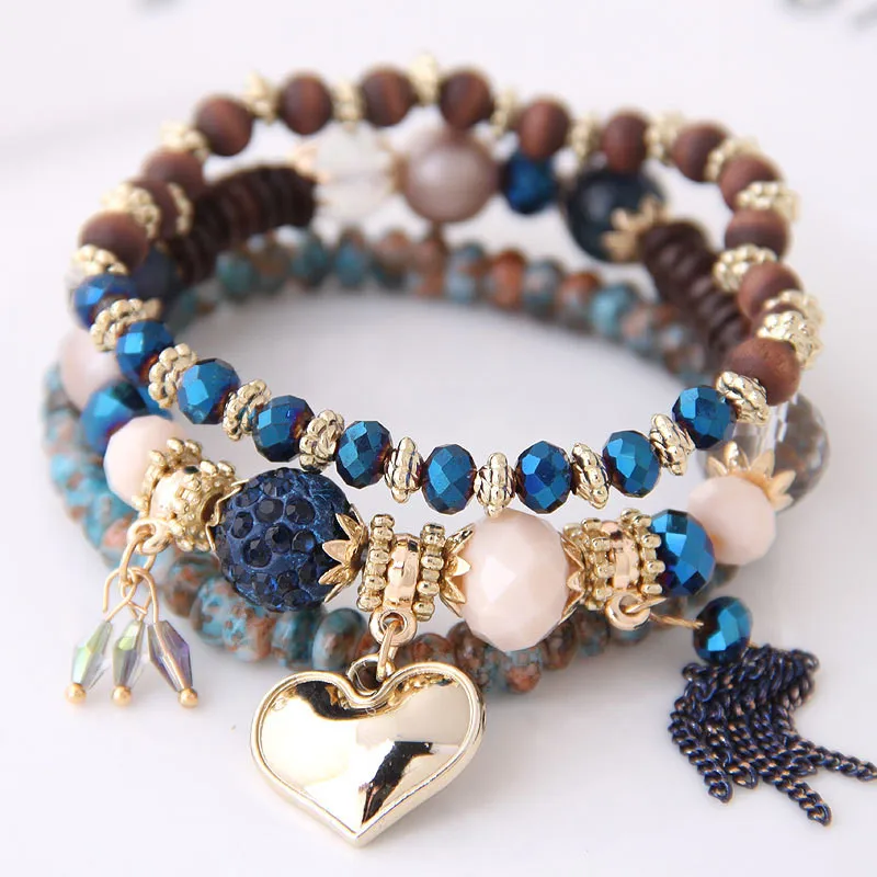 DIEZI, винтажный Модный кристаллический шарик, браслеты с сердечками, браслеты с подвесками для женщин, браслет с кисточкой из натурального камня, pulseira feminina
