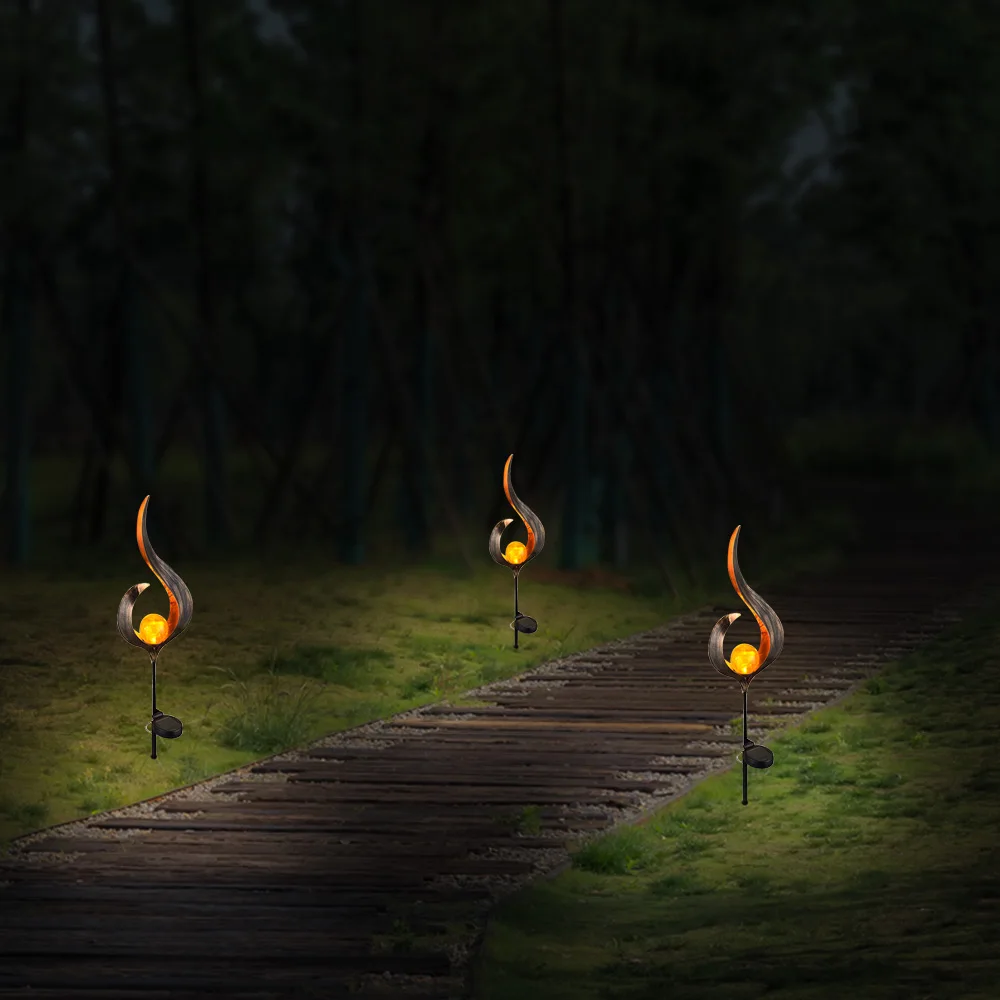 Made of durable iron and glass, this solar LED light can be used for decorating your pathway, garden, lawn or courtyard.
