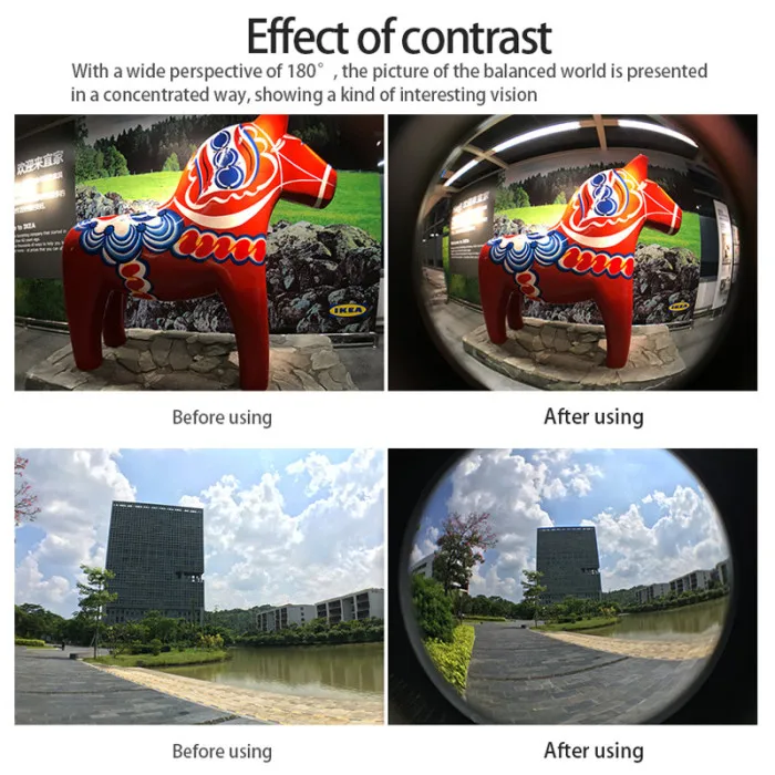Объектив имеет очень большой угол обзора 180 градусов и обладает сильным визуальным эффектом.