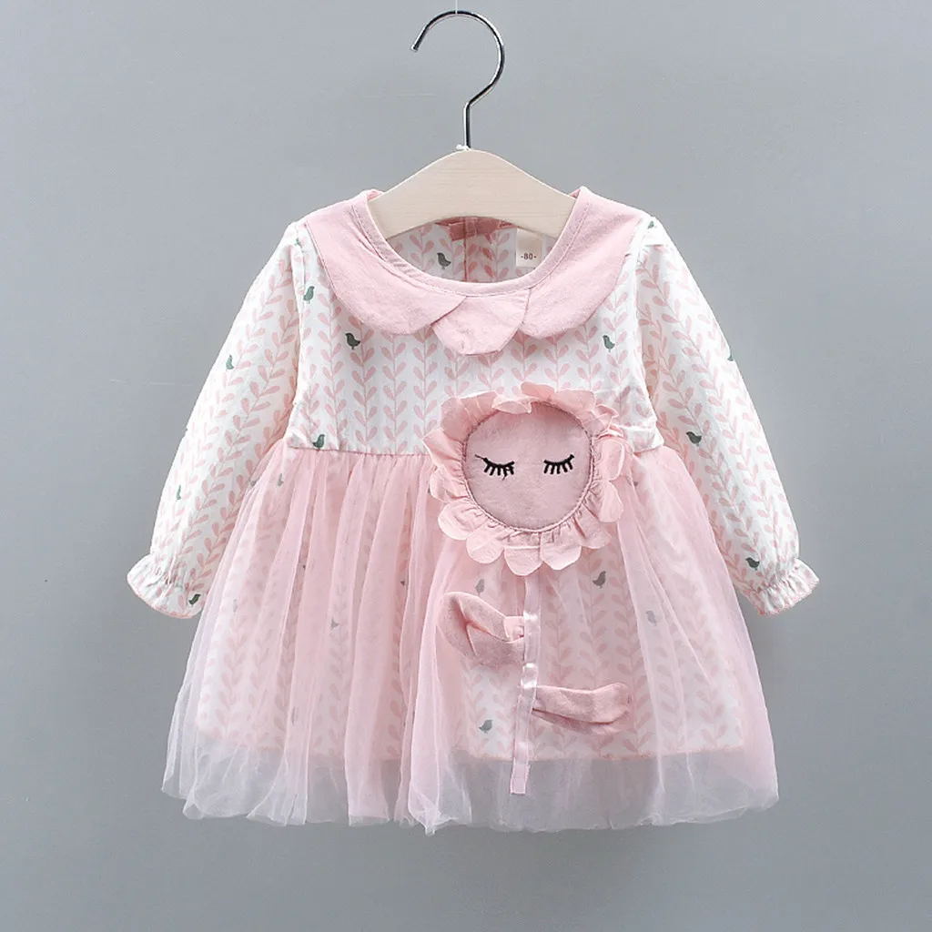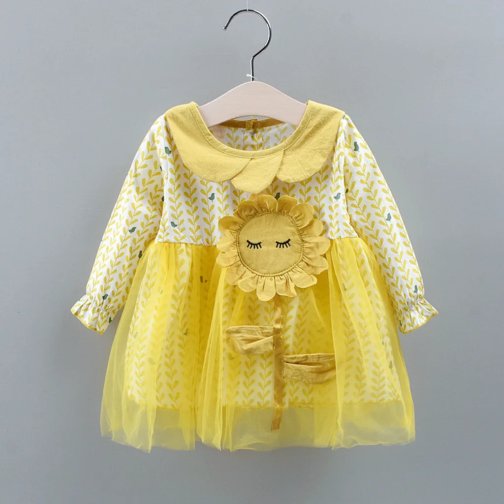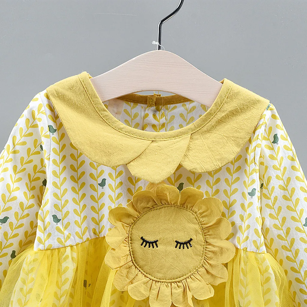 Одежда для малышей с цветочным узором и длинными рукавами для девочек платье принцессы с юбкой-пачкой платья с подсолнечниками одежда