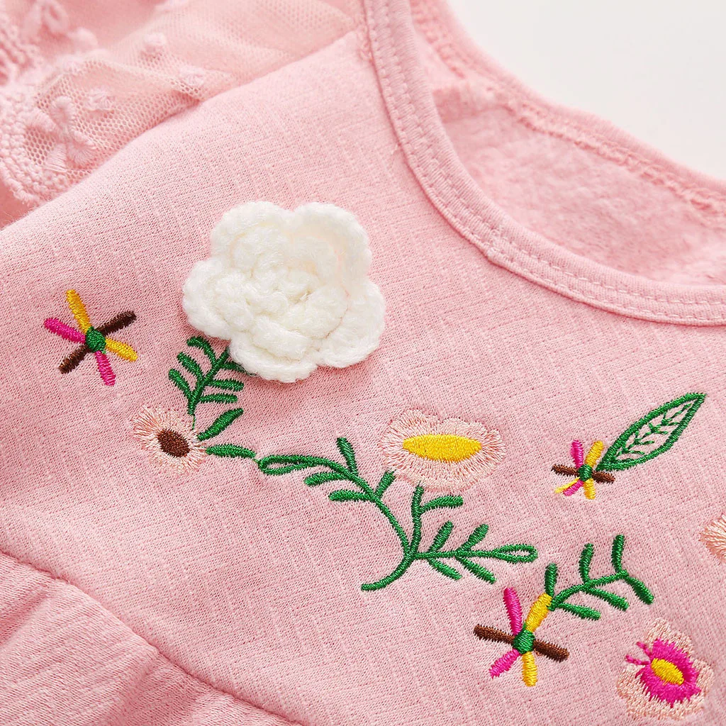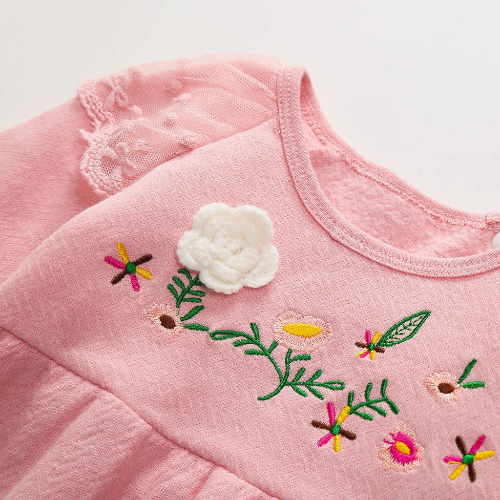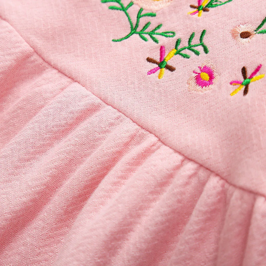 Toddler Kids Baby Girls Soild Embroidered Long Sleeve Princess Skirt Dresss