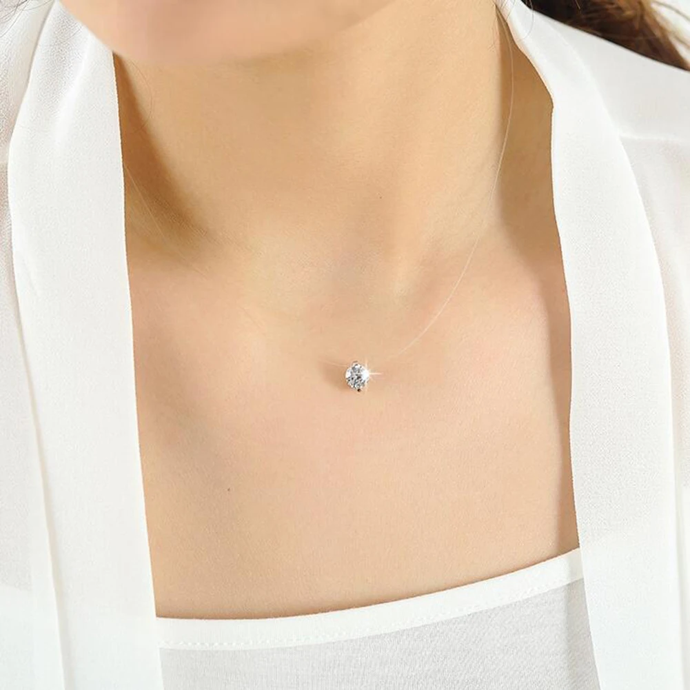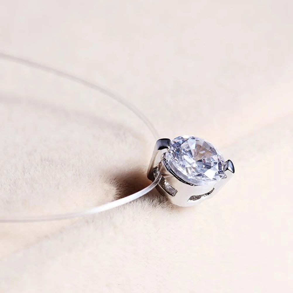 Прозрачная леска с кулоном из кубического циркония, простая, но элегантная.