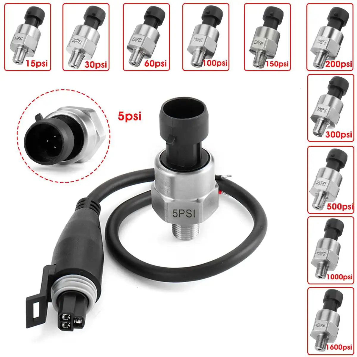 Преобразователь давления топлива из нержавеющей стали 5 в 1/8NPT для масла, воздуха, воды 5/15/30/60/100/150/200/300/500/1000/1600 Psi
