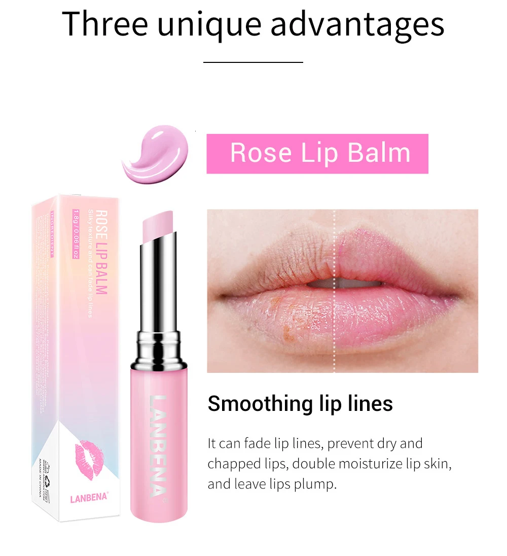 Купить 3 получить 1 подарок LANBENA Гиалуроновая кислота для губ массажер Хамелеон бальзам для губ Роза Увлажняющий 3 шт + Гиалуроновая кислота маска для лица
