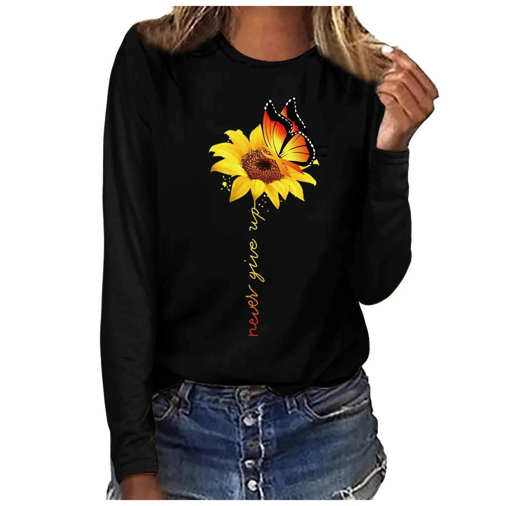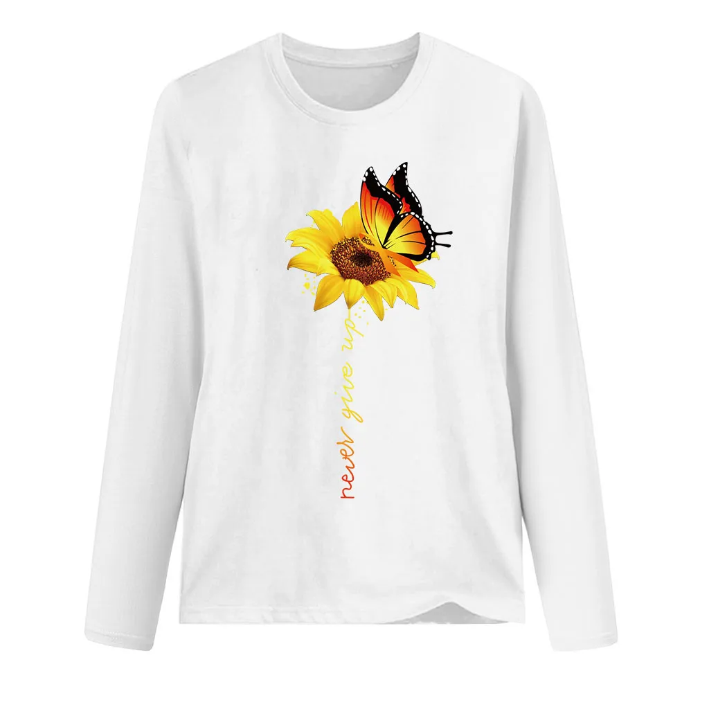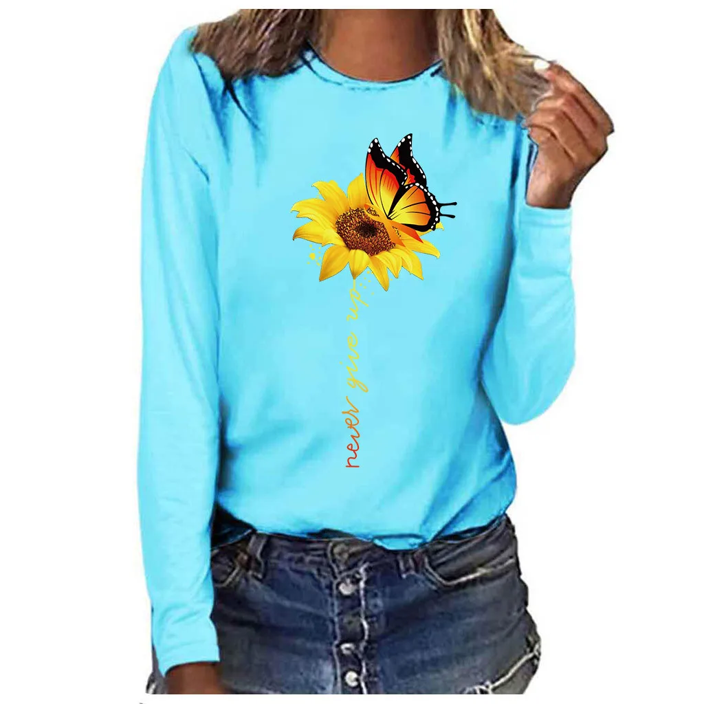 Женская мода плюс размер круглый вырез с длинным рукавом Футболка Блузка Топы