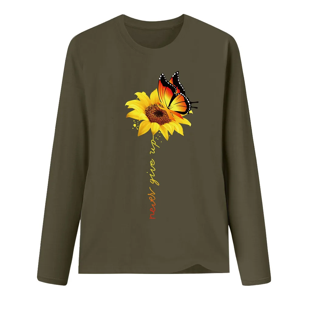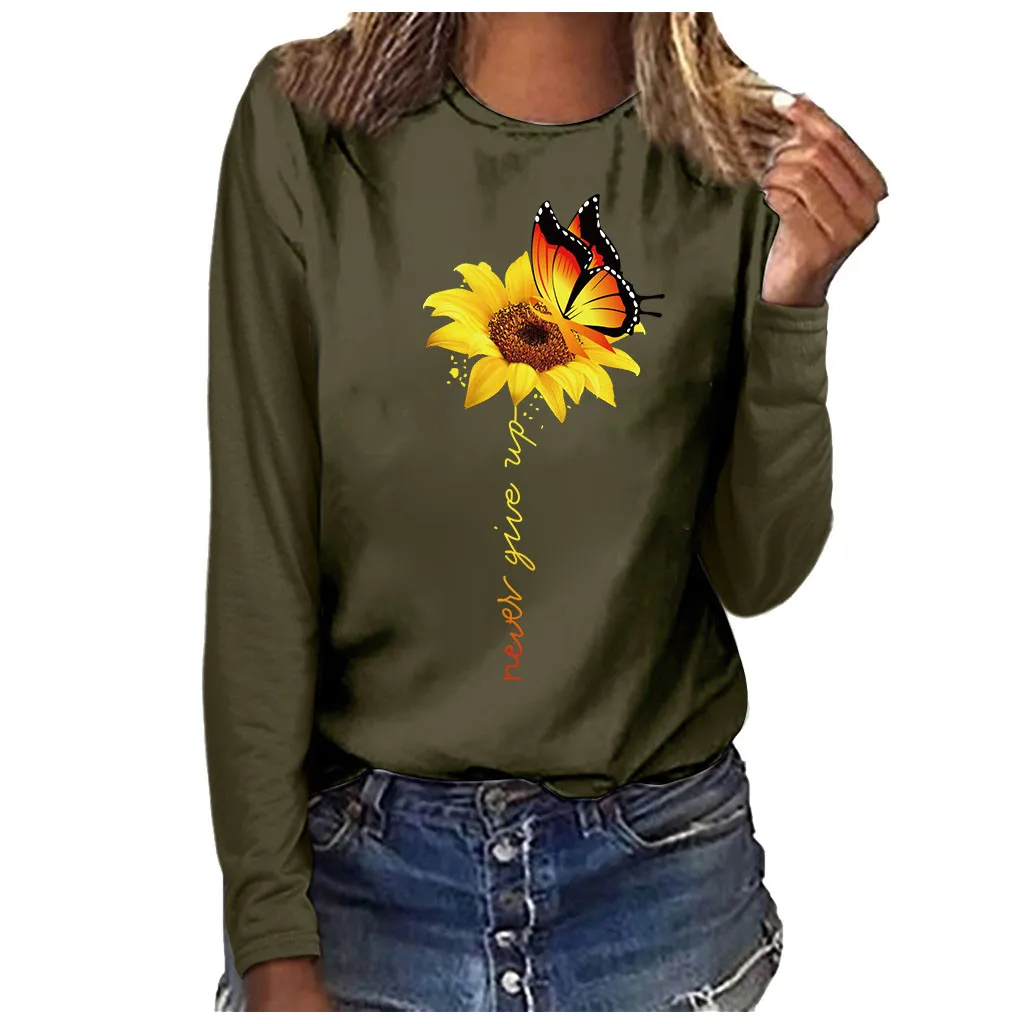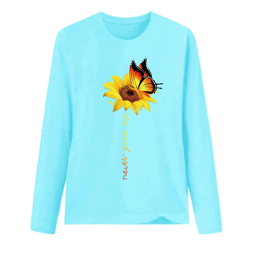 Женская мода плюс размер круглый вырез с длинным рукавом Футболка Блузка Топы