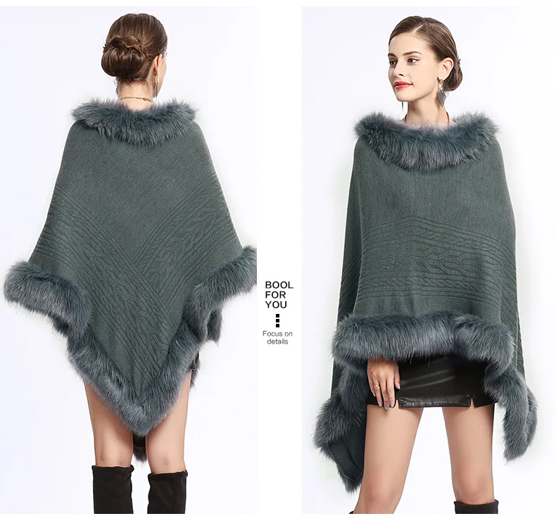 Новый Имитация лисьего меха воротник круглый вырез пуловер свитер накидка шаль