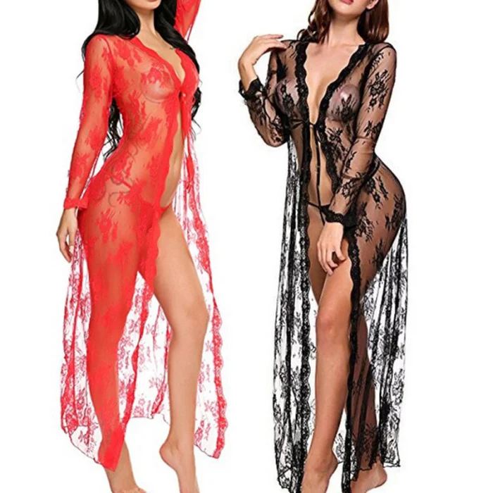Тип одежды: женское бикини, закрытый халат, кружевной прозрачный кардиган с длинными рукавами, одежда для сна, нижнее белье
