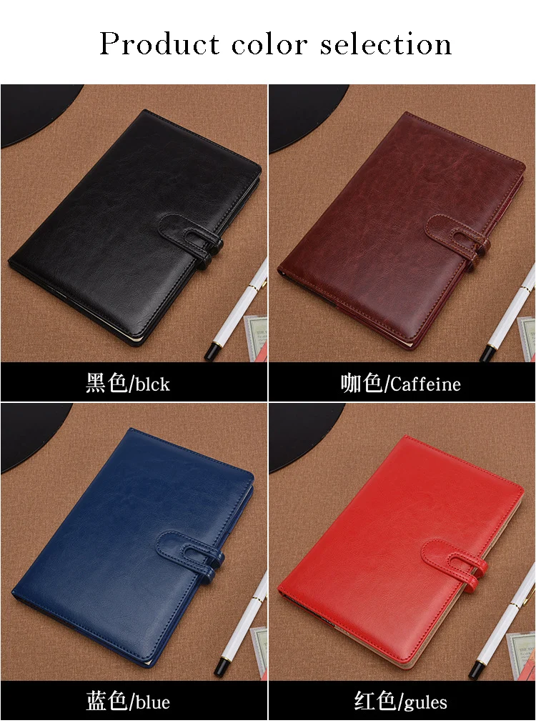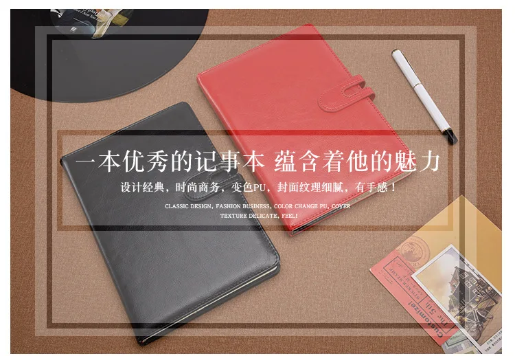 Материал чехла: меняющая цвет искусственная кожа Цвет крышки: красный, синий, черный, коричневый Переплет: Беспроводная связка Материал внутреннего слоя: даолиновая бумага Вес внутренней бумаги: 80 (г) Может быть настроен (100 штук)