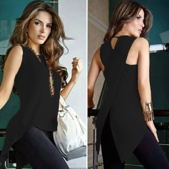 Тип одежды: женские топы без рукавов с асимметричным подолом и открытой спиной, облегающие повседневные топы для лета