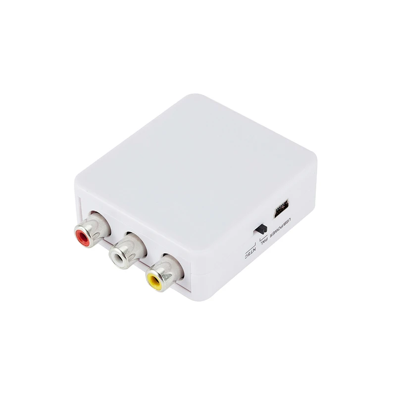 Мини-hdmi в AV преобразователь сигнала, который преобразует hdmi видео сигнал или аудио сигнал в AV (CVBS) композитный видео сигнал и FL / FR стерео аудио сигналы, в то время как Поддержка DVI системы sideline сигналы. Для того, чтобы помочь пользователям изменить высокого качества сигнала HDMI Видеосигнал в обычный CVBS сигнал (стандартное разрешение 480i, 576i,), так что можно воспроизводить на ТВ, VHS видеомагнитофон, DVD рекордеры, И т. Д. Также поддерживает NTSC и PAL два ТВ формата, как показано ниже: Особенности: Нет необходимости устанавливать драйверы, портативный, гибкий, подключи и работай. Низкая мощность, без адаптера питания. Поддержка NTSC и PAL два стандартных ТВ форматов выход Совместимость HDMI1.3 Входные порты: 1xHDMI. Выход порты: 1xRCA (желтый, белый, красный) Разрешение входного сигнала HDMI: 640x480 @ 60 Гц, 800x600 @ 60 Гц, 1024x768 @ 60 Гц, 1280x720 @ 60 Гц, 1280x1024 @ 60 гц, 1360x768 @ 60 гц, 1600x1200 @ 60 гц, 1920x1080 @ 60 гц, 480i / 60 гц, 480p / 60 гц, 576i / 60 Гц, 576p / 60H, 720p50 / 60 Гц, Выход CVBS: PAL, NTSC_M, (NTSC_J Размеры (мм): 66 (L) x55 (W) x20 (H) Посылка включает в себя: HDMI в AV конвертер * 1 USB кабель * 1 Руководство пользователя * 1