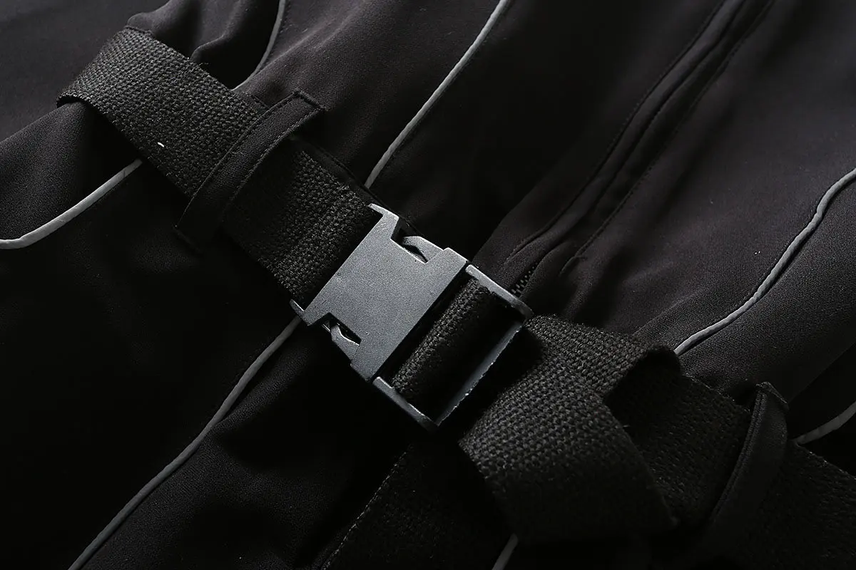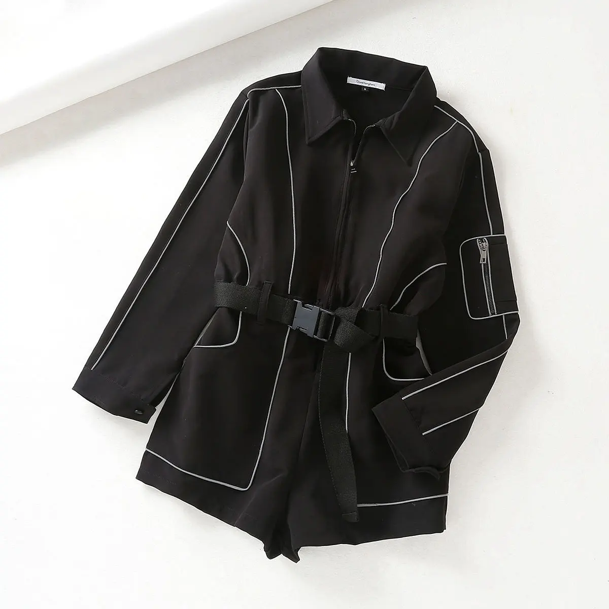 Зима-осень 3м отражающие Женские легкий костюм с шортами в полоску с длинными рукавами, черные, с ремешками на пряжках, женский комбинезон сексуальный комбинезон в уличном стиле