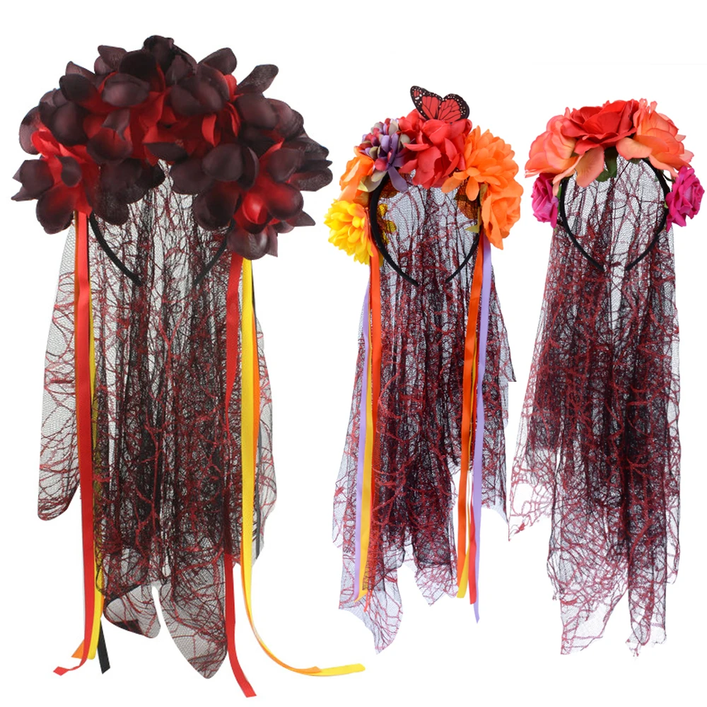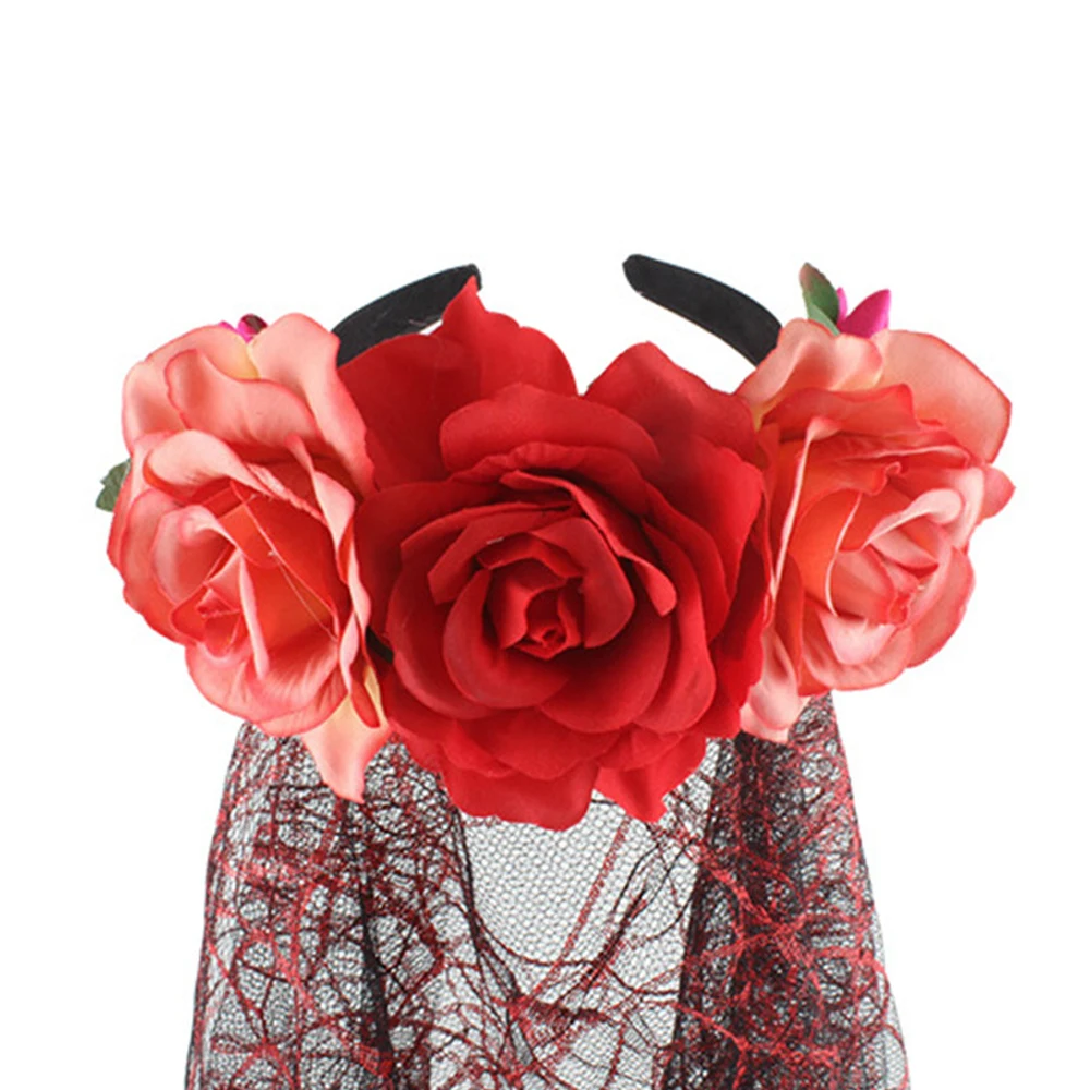 Нарядное платье День мертвых вуаль красная роза женский головной убор аксессуар Хэллоуин Особенности: