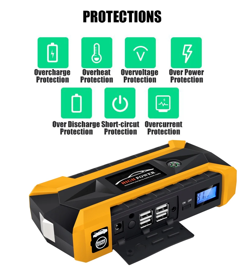 Пусковое устройство для автомобиля WINTUWAY, горячая распродажа, 12 В, 4USB, портативное автомобильное зарядное устройство, аварийный пусковой инструмент для банка, комплект