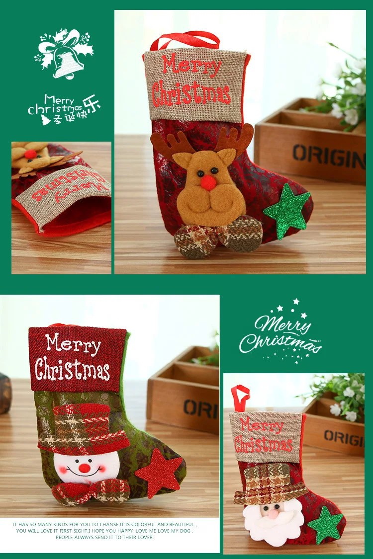 Название продукта: Рождественский чулок Материал: шерсть Рисунок: Санта-Клаус, снеговик, олень, медведь Применение: рождественские украшения Размеры: 10*17 см Повод: Рождество
