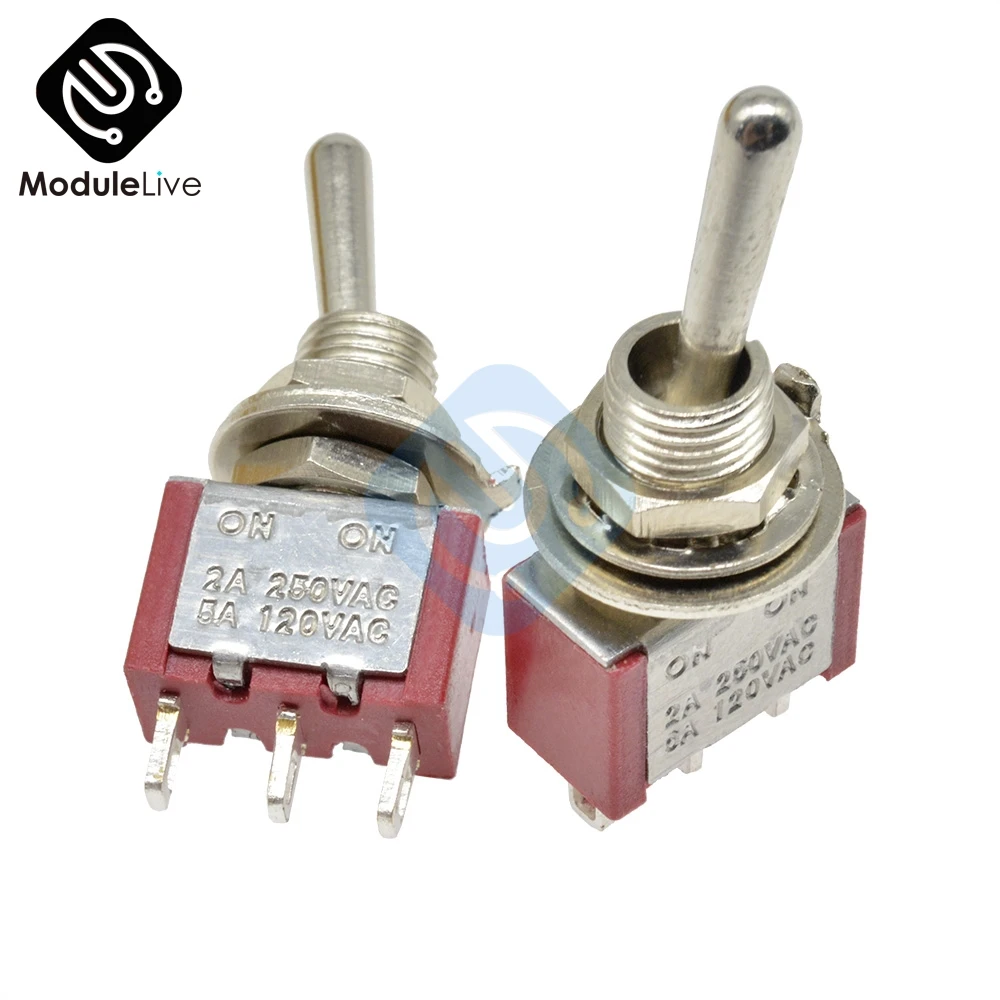 Toggle переключатель однополюсный двойной бросок SPDT ON-ON 120VAC 6A 1/4 дюймов крепление 13*8 мм (MTS102) 3 положения125 В/6А; 250 В/3A красный