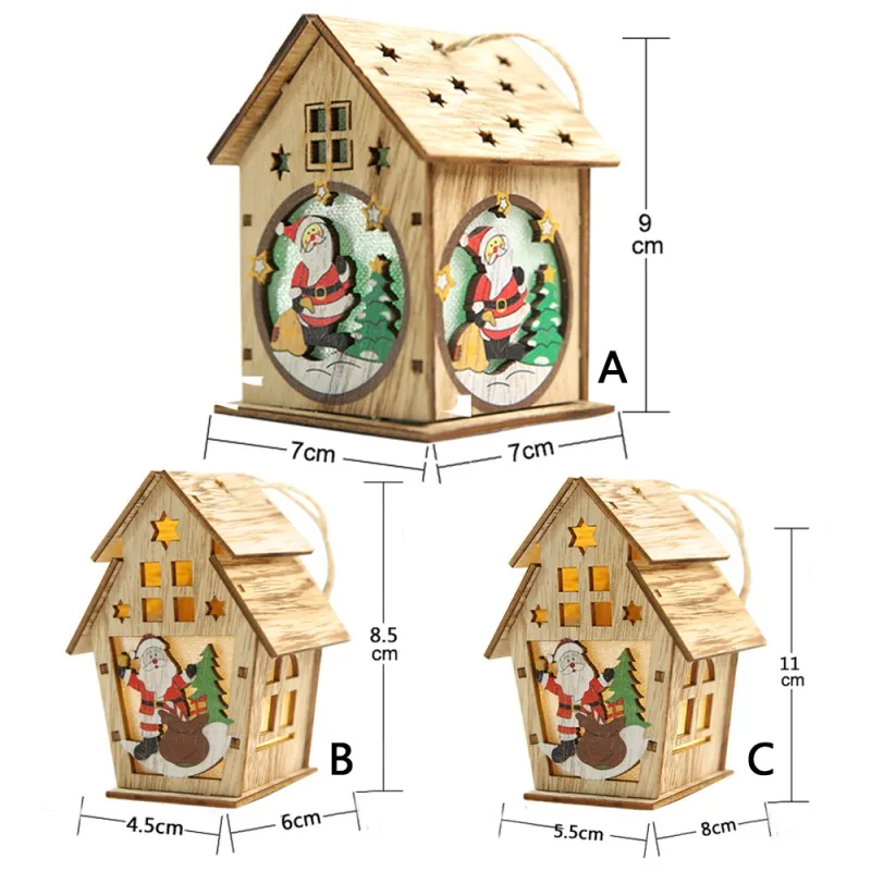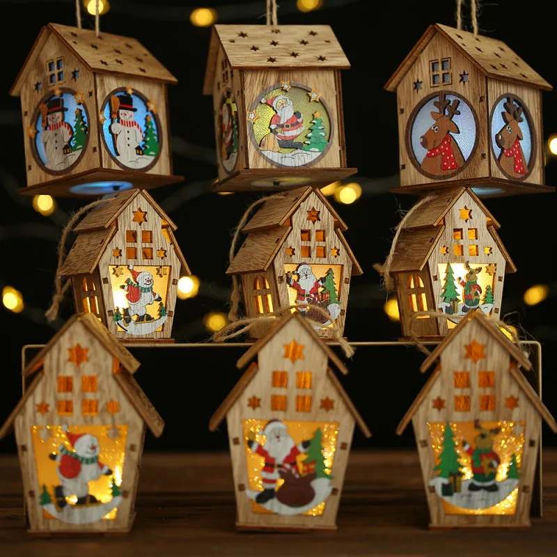 Wooden DIY Assembly Lighting House Christmas Hanging Pendant Desk Ornaments With LED Light For Indoor Holiday Party Decor