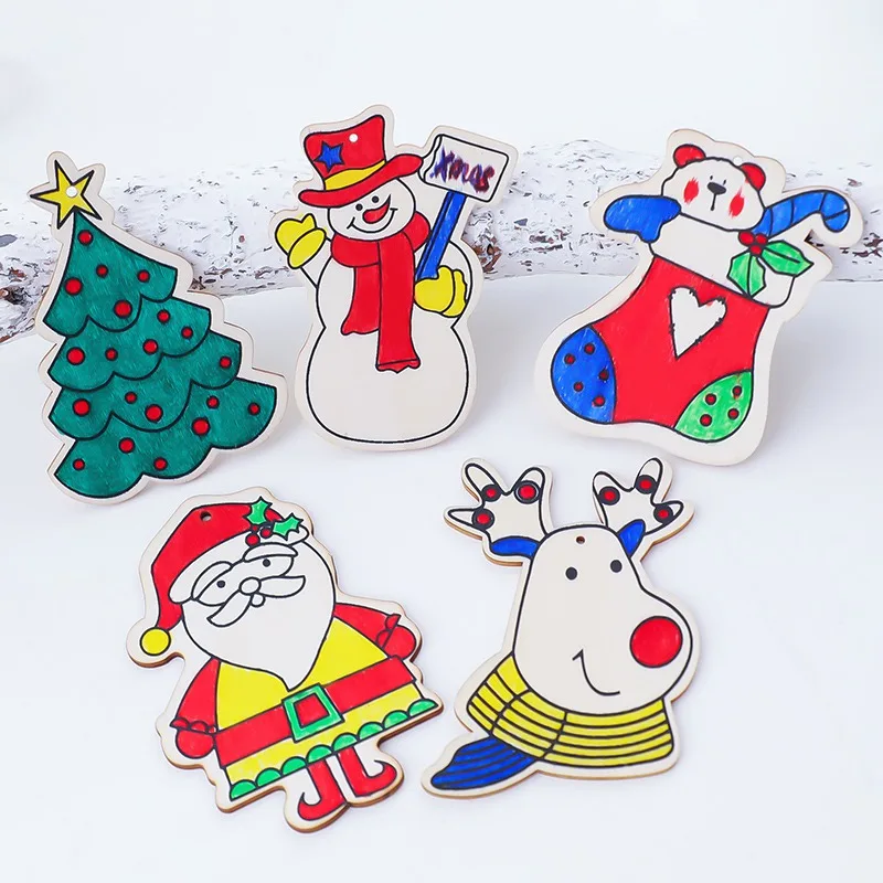 Необработанные деревянные ломтики Рождественская елка Висячие Подвески безболезненные пустые Рождественские елочные украшения DIY художественные поделки праздничное украшение Раскрашивание кисти цвет случайный