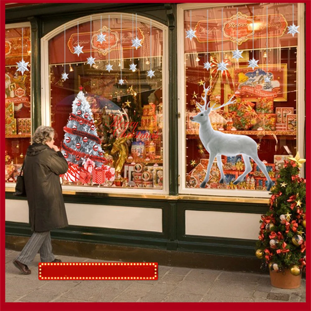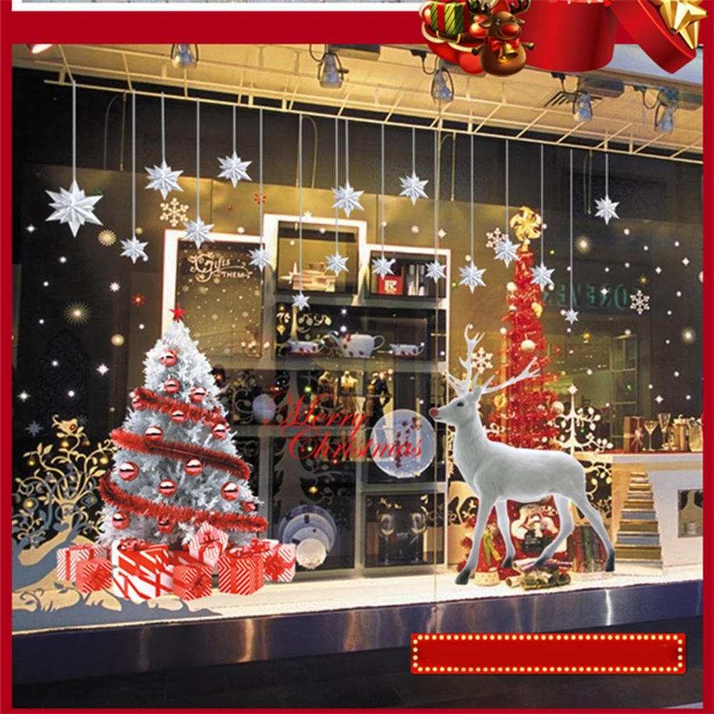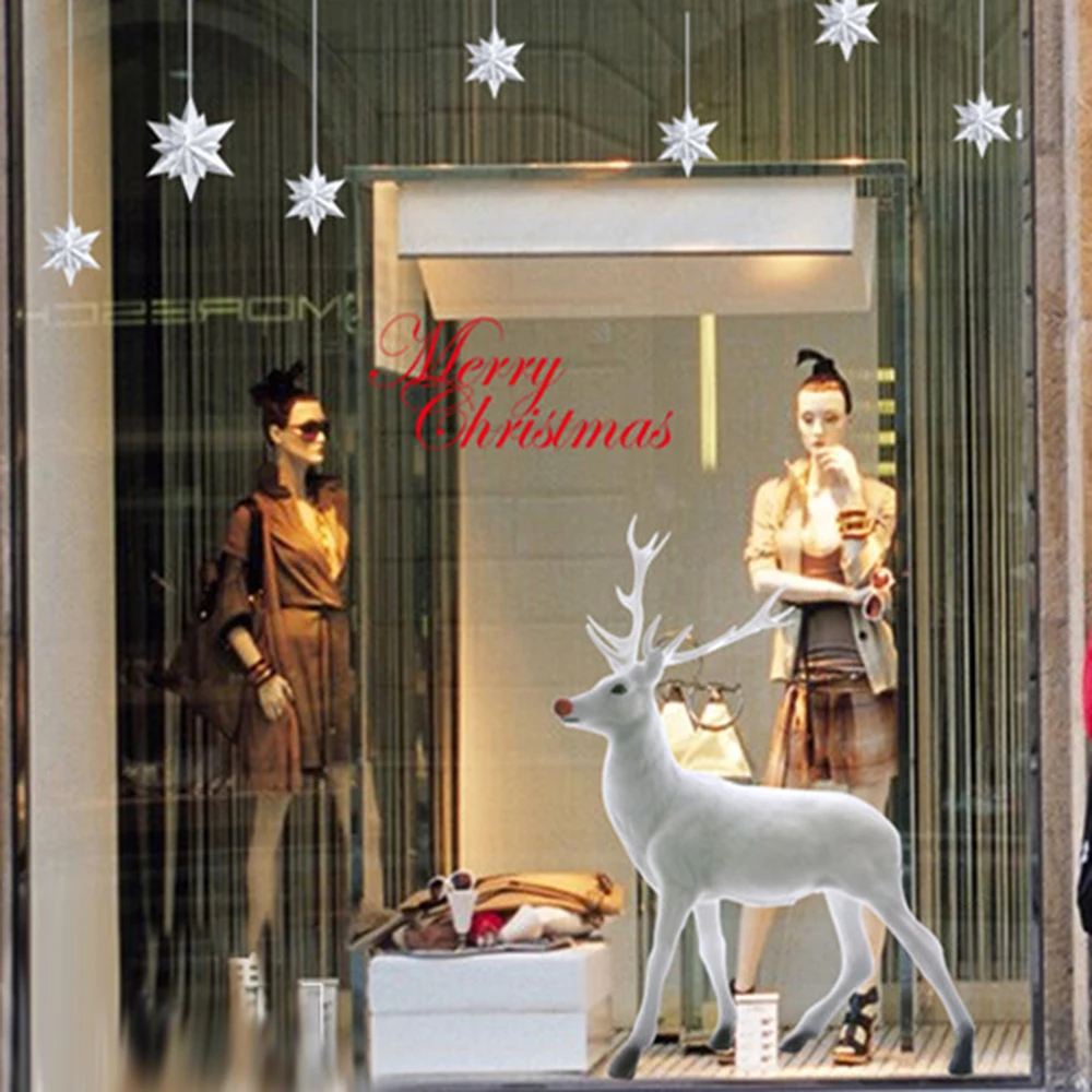 Рождественское Новогоднее украшение, наклейка на стену, мультяшная детская комната, снежинка, лось, наклейка на стену, праздничная вечеринка, домашний декор, 35A