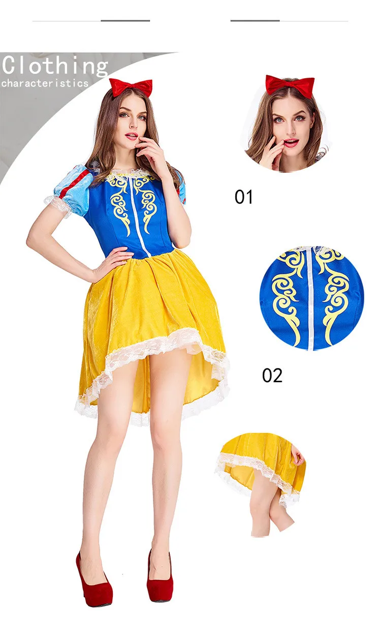 New Snow White Cosplay Halloween For Women Wear Adult Fantasia Carnival Party Cartoon Princess Snow White Dress Costumes